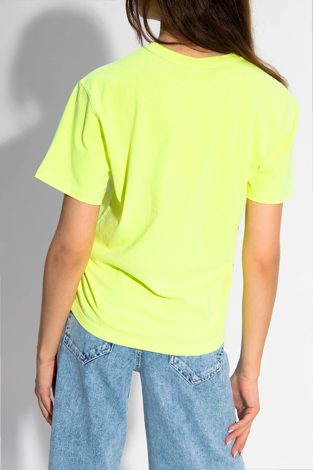 Neon yellow crewneck T-shirt from T by Alexander Wang. Crafted from cotton, this style showcases a white tactile logo detail.