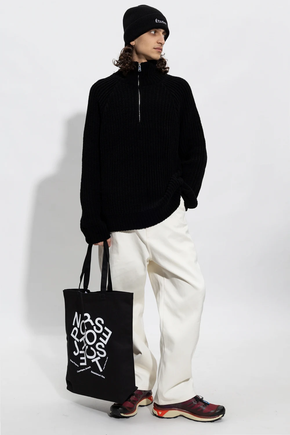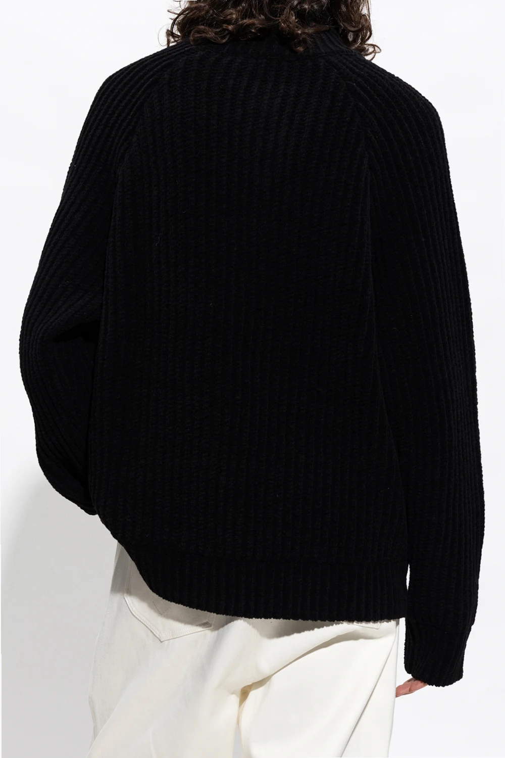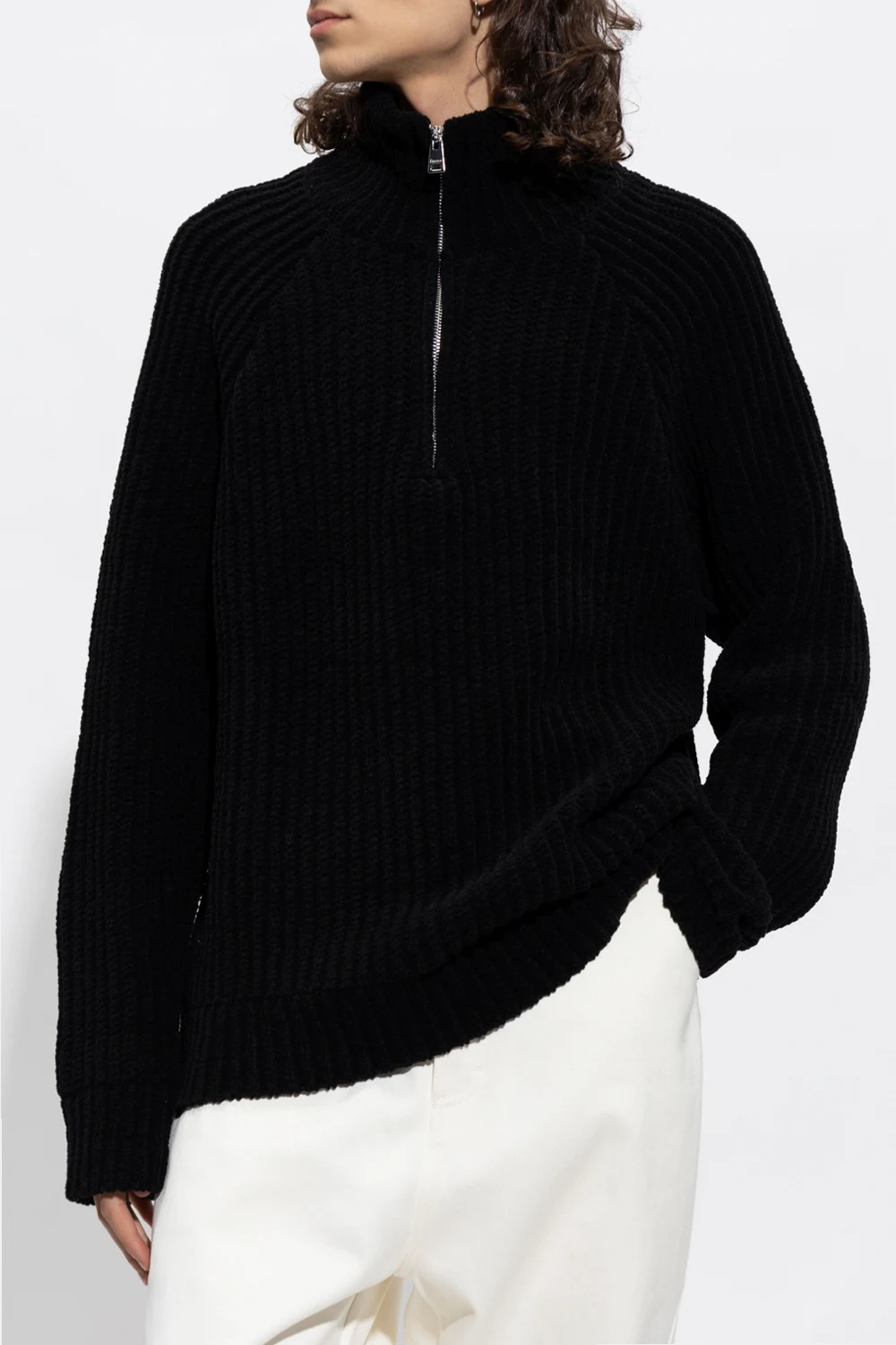 Black sweater with a stand collar and zip fastening from Etudes. Made of wool.