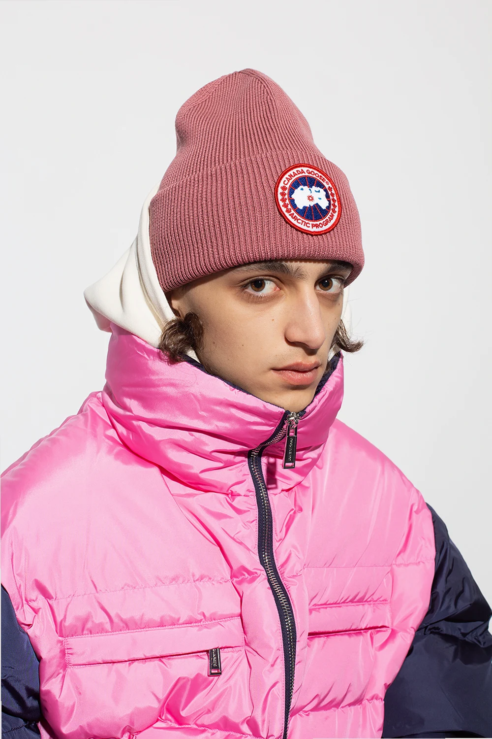 Dark pink hat from Canada Goose. Crafted from wool, this item showcases a cream, navy blue and red logo patch for brand recognition.