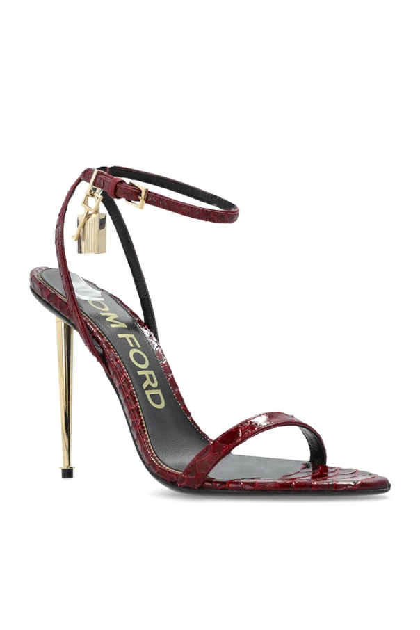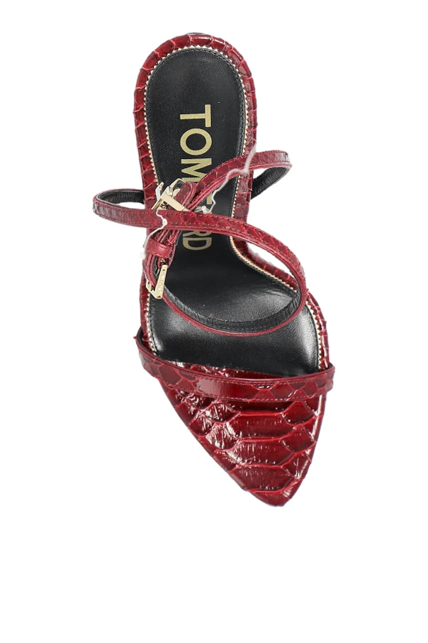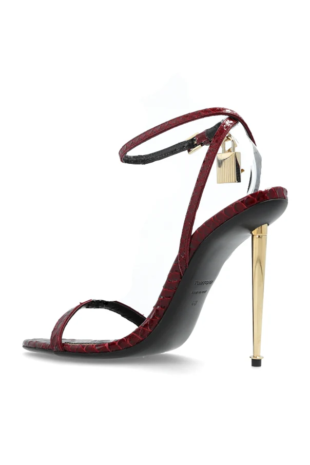 Lederne Sandalen mit Absatz von Tom Ford sind der Inbegriff raffinierten Geschmacks und exquisiter Eleganz. Gehalten in einem tiefen Bordeaux -Ton, begeistern sie durch ihre schlanke Linie und die minimalistische Form – feine Riemen umschmeicheln dezent den Fuß und verlaufen um die Zehen sowie den Knöchel. Der atemberaubend hohe, dünne Stiletto-Absatz verleiht der Silhouette Leichtigkeit, während die exotisch inspirierte Struktur der Riemen den exklusiven Charakter des Schuhwerks hervorhebt.