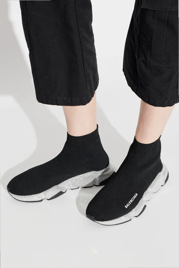 Speed LT Sneaker-Socken-Schuhe von Balenciaga verkörpern moderne Eleganz in einer Interpretation urbanen Luxus. Sie zeichnen sich durch eine hohe, stromlinienförmige Silhouette aus, inspiriert von der anatomischen Linie des Fußes, mit einem passgenauen, elastischen Schaft aus Strickmaterial. Dieses edle Design bietet außergewöhnlichen Komfort und Atmungsaktivität und begeistert durch Innovation und bequemen Tragekomfort.