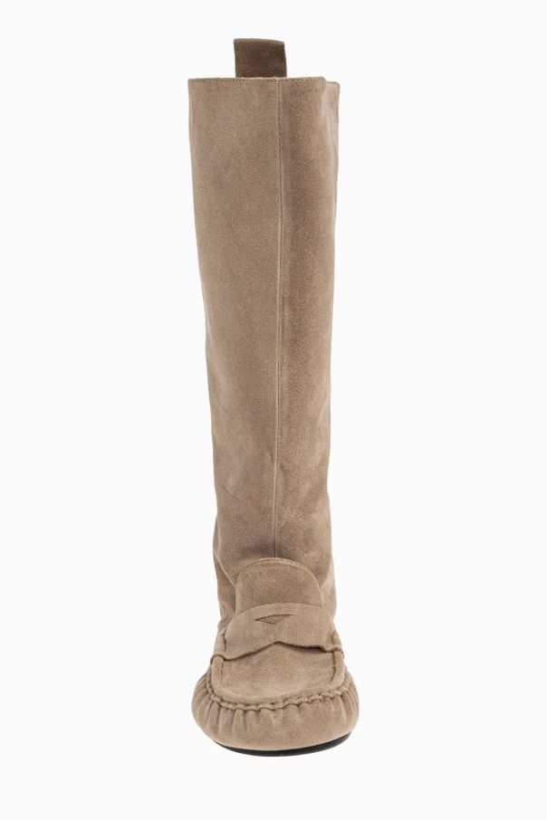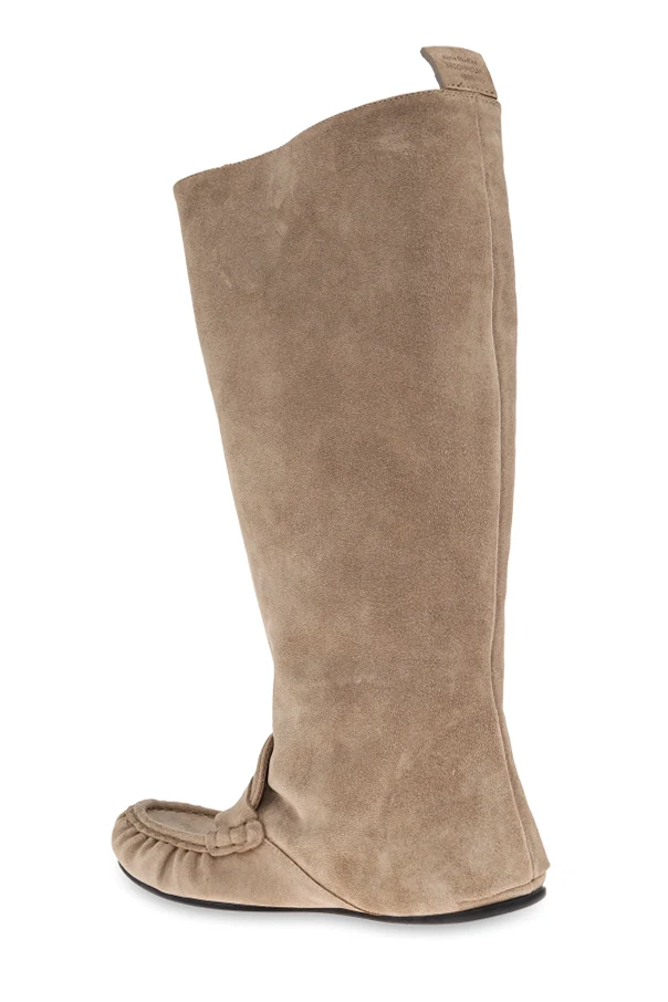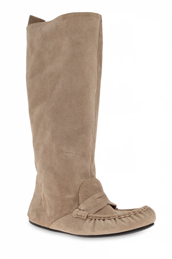 Die Wildleder-Stiefel von Acne Studios begeistern mit zeitloser, subtiler Eleganz und außergewöhnlicher Liebe zum Detail. Die beigefarbene Nuance verleiht ihnen Vielseitigkeit und unterstreicht die Zartheit sowie Raffinesse jedes Outfits. Die kniehohen Stiefel zeichnen sich durch weiches, luxuriöses Wildleder aus, das sich harmonisch an die Wade schmiegt und Komfort sowie eine perfekte Passform bietet.