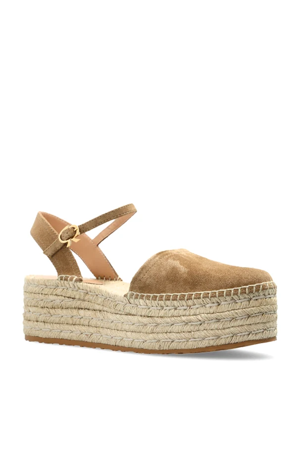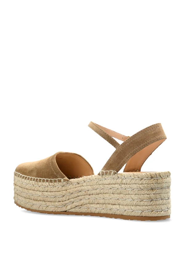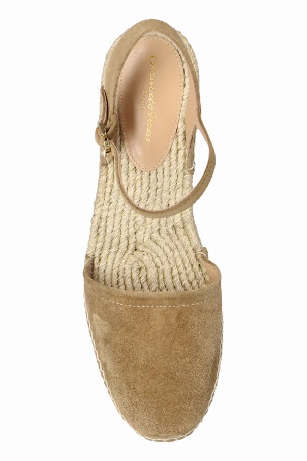 Wildleder-Plateauschuhe von Gianvito Rossi begeistern durch raffinierte Eleganz und eine subtile Form. Das sorgfältig verarbeitete Obermaterial aus hochwertigem braunem Wildleder besticht durch ein edles, mattes Finish, das harmonisch mit der charakteristischen, von Hand mit Jute- oder Raphia-Schnur umflochtenen Plateausohle zusammenspielt. Die vollständig abgerundete Vorderpartie sowie der dezent offene Fersenbereich mit verstellbarem Riemen um den Knöchel garantieren Komfort und einen unverwechselbaren Look.