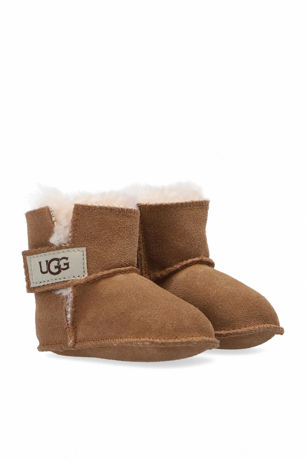 Light brown 'Erin' boots from UGG Kids. Crafted from suede, this pair is set on a suede sole and features cream wool lining, distinctive stitching details and a beige and brown logo patch.