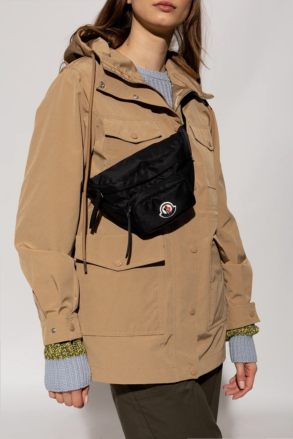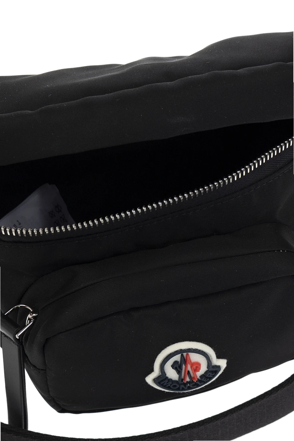 Black ‘Felicie’ belt bag from Moncler. Fastened with a zip, this model features a front zip pocket with a logo patch, adjustable belt, one internal compartment and silver-tone metal hardware.