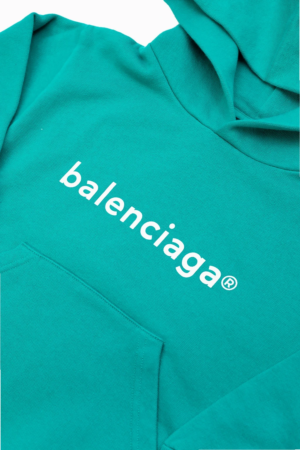 Green hoodie from Balenciaga Kids. Made of cotton, this design is complete with a front slip pocket, white logo print and ribbed trims at the hem and cuffs.