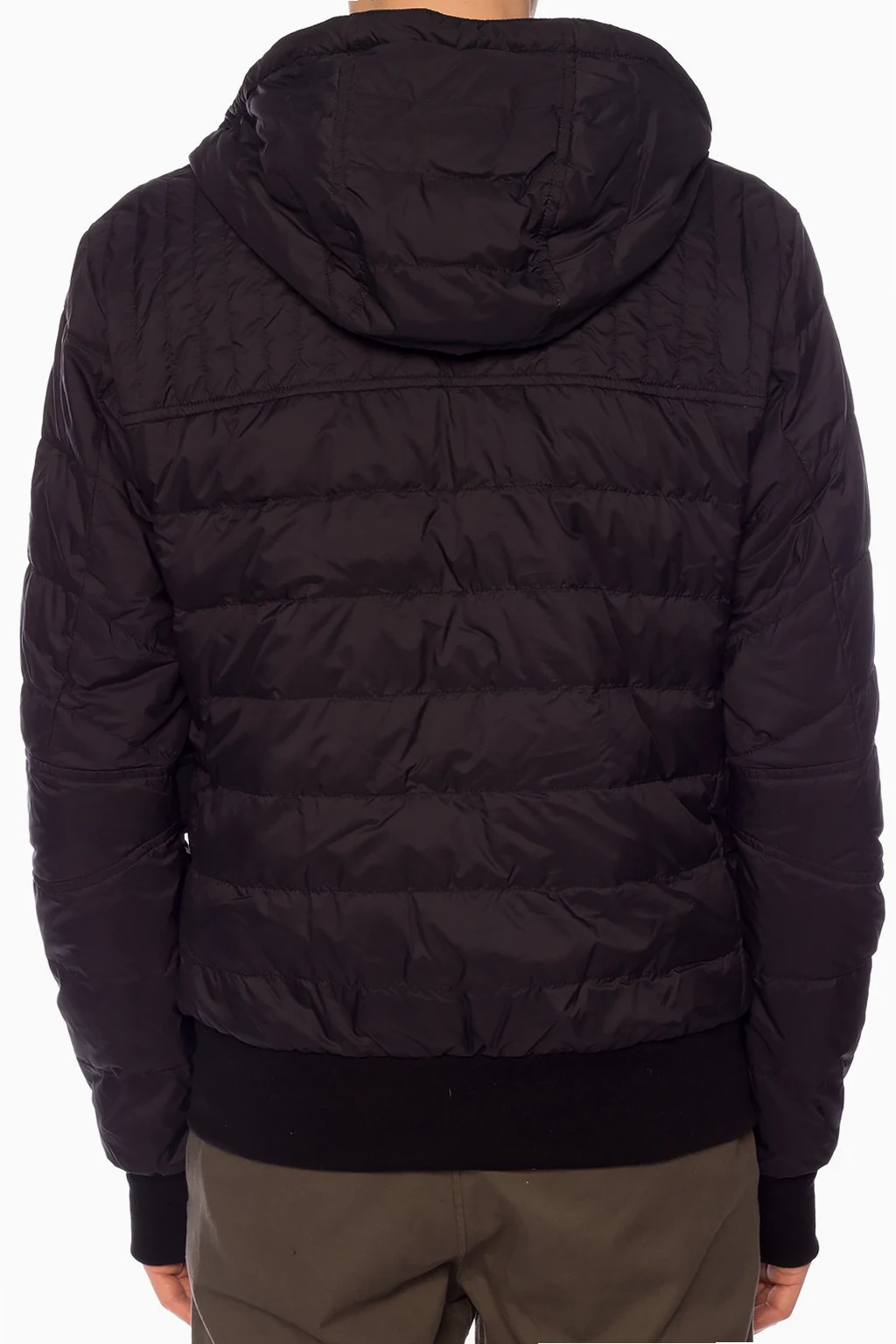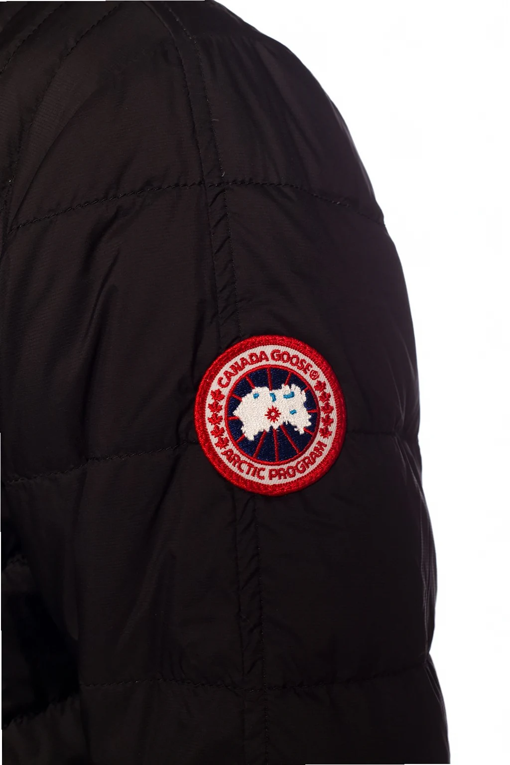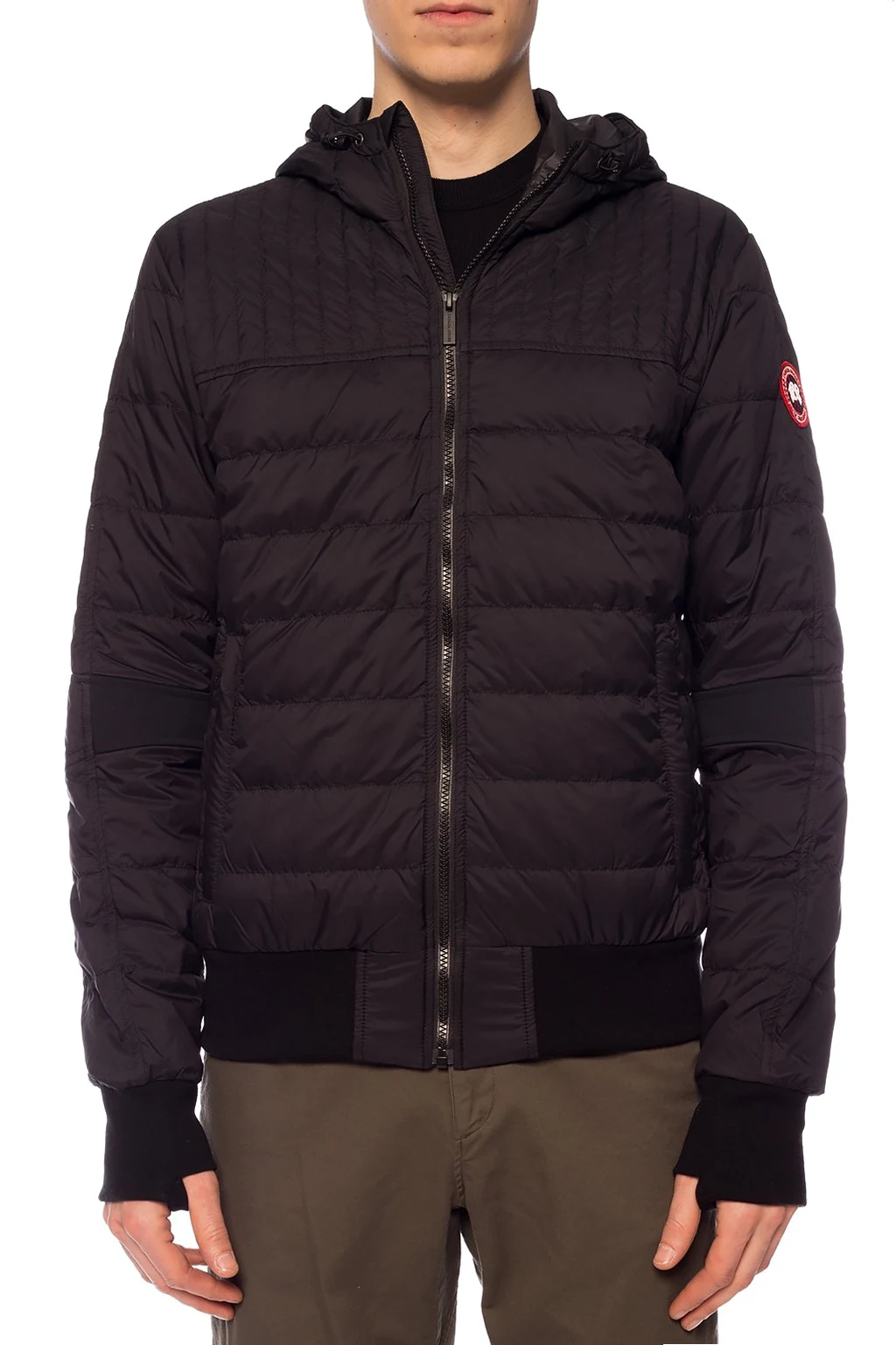 Black ‘Cabri’ quilted down jacket from Canada Goose. Zip fastening. Decorated with a logo patch in white, red and navy. Two zip pockets on the front. Drawstring hood. Elasticated bottom hem and cuffs. Temperature range: 5°C to -5°C.