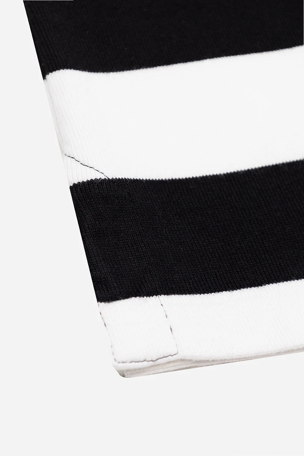 – Schweres, langärmliges kastiges T-Shirt in Schwarz und Weiß mit Streifen