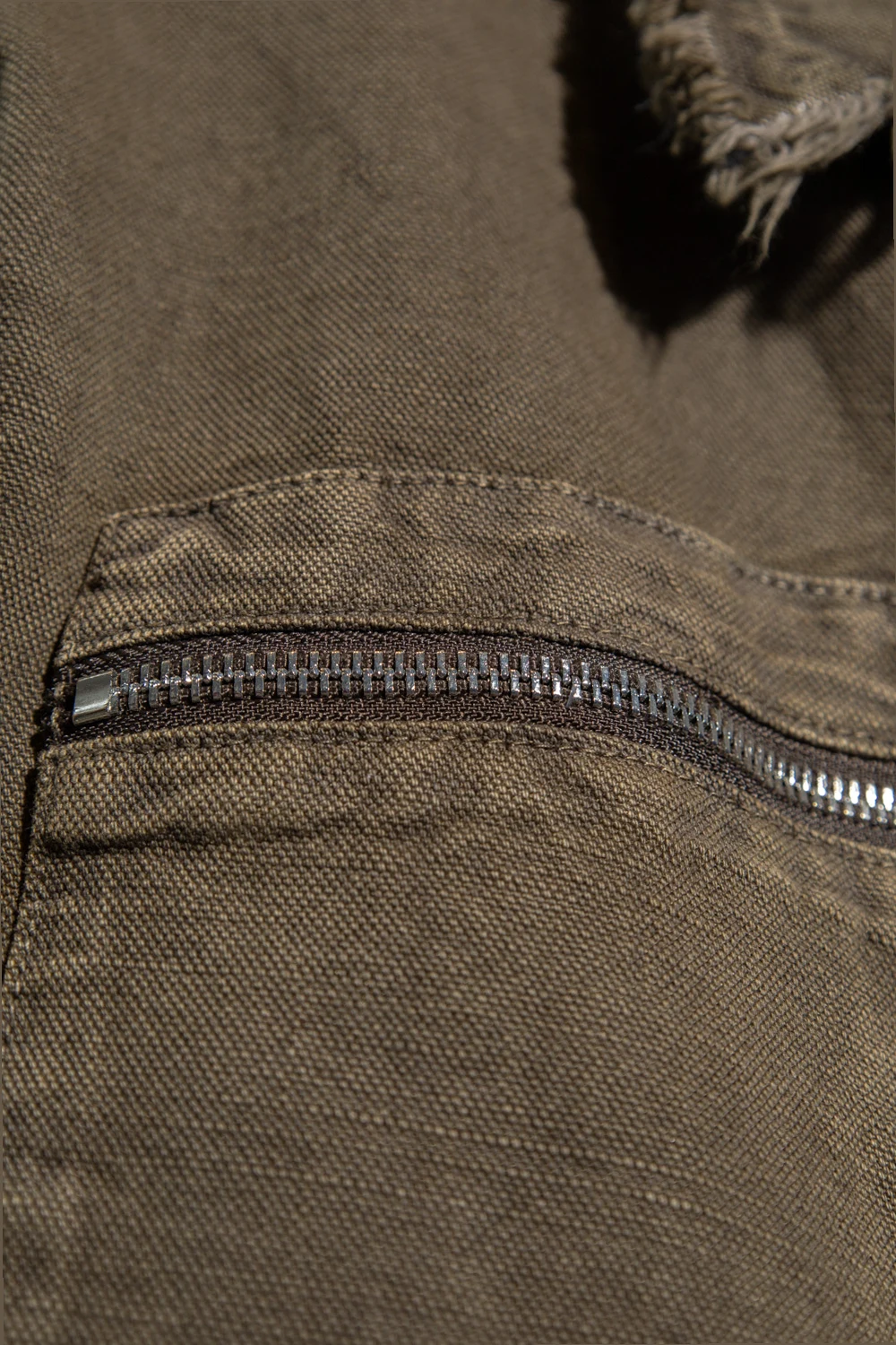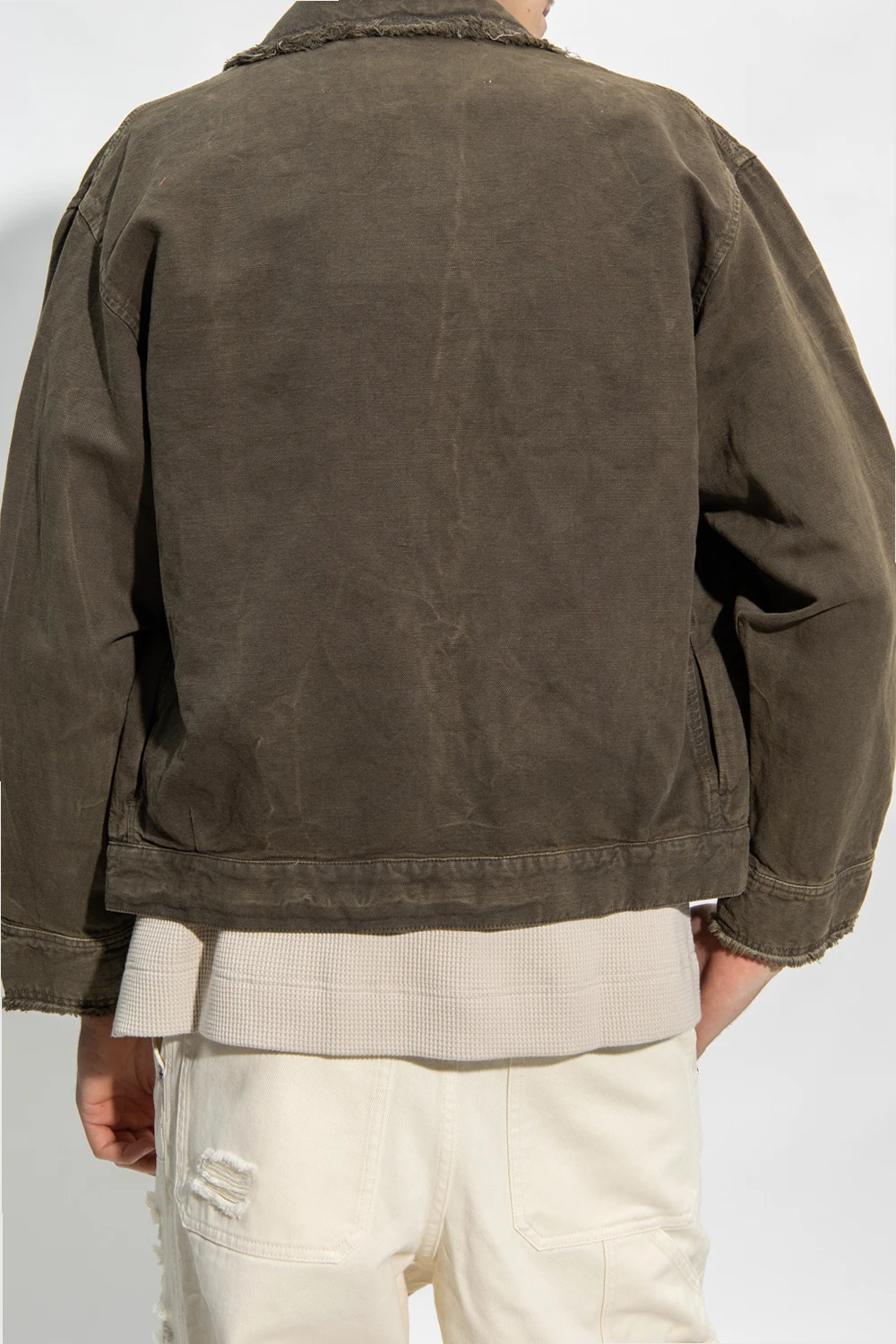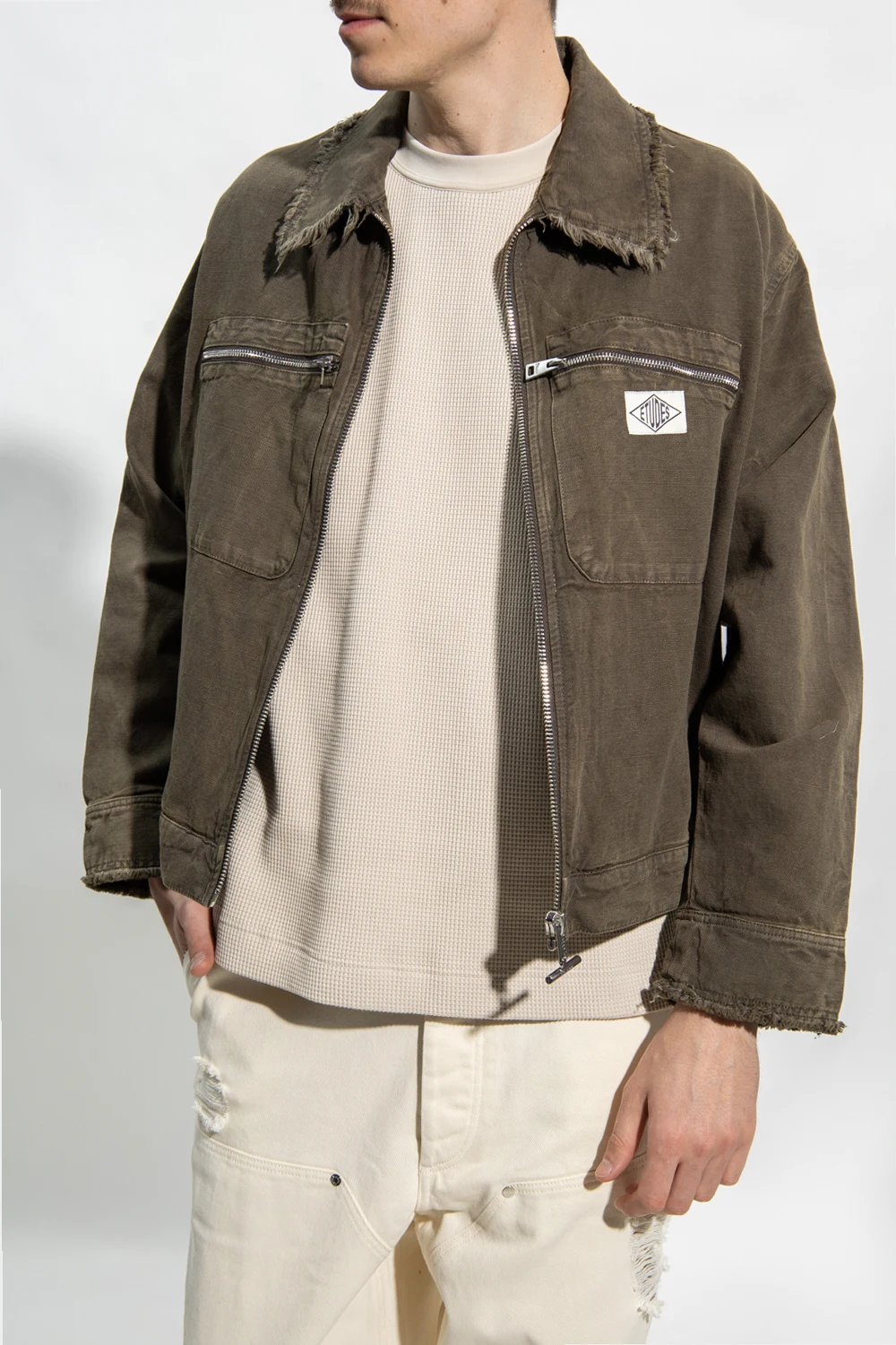 Green jacket from Etudes. Crafted from a cotton and linen blend, this garment features a zip fastening, vintage effect, logo patch, two zip pockets, long sleeves and raw cut edges.