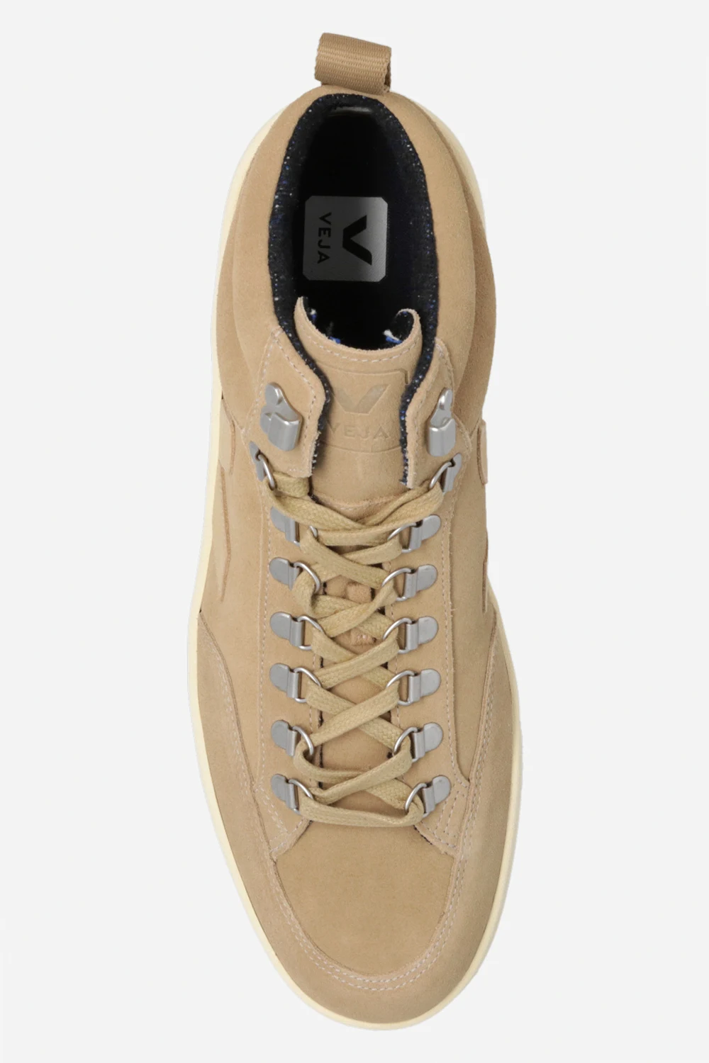 Beige ‘Roraima’ lace-up sneakers from Veja. Crafted from suede, this pair features an embossed logo, the brand’s signature patch in beige, recycling ‘Flannel’ lining, silver-tone metal hardware and cream rubber sole made of organic and recycled materials.