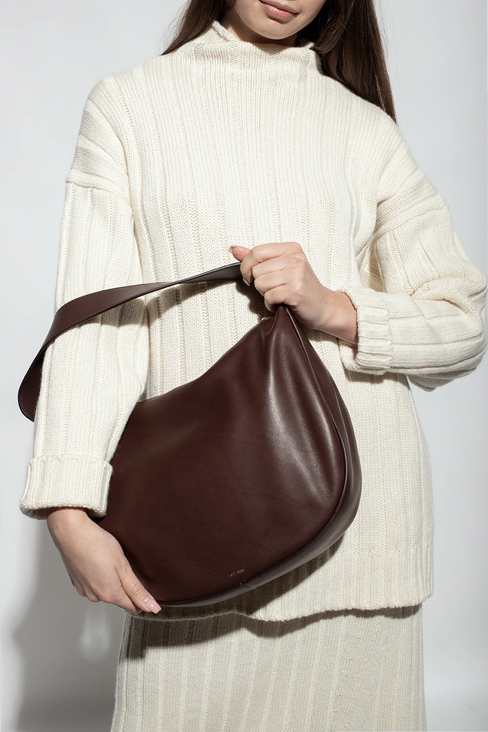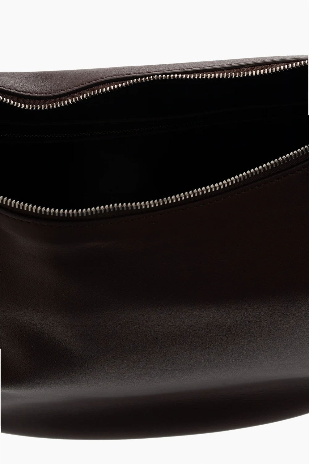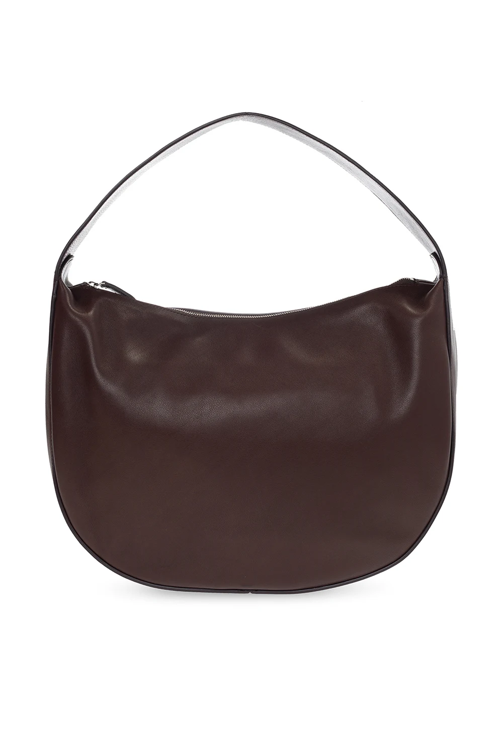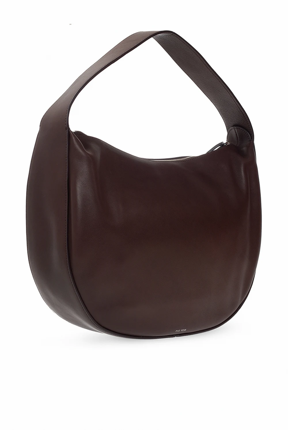Brown 'Allie’ handbag from The Row. Crafted from leather, this design fastens via a zipper and showcases a silver-tone logo pattern. It is complete with a hand strap, silver-tone metal hardware and one internal compartment with two slip pockets and one zipped pocket.