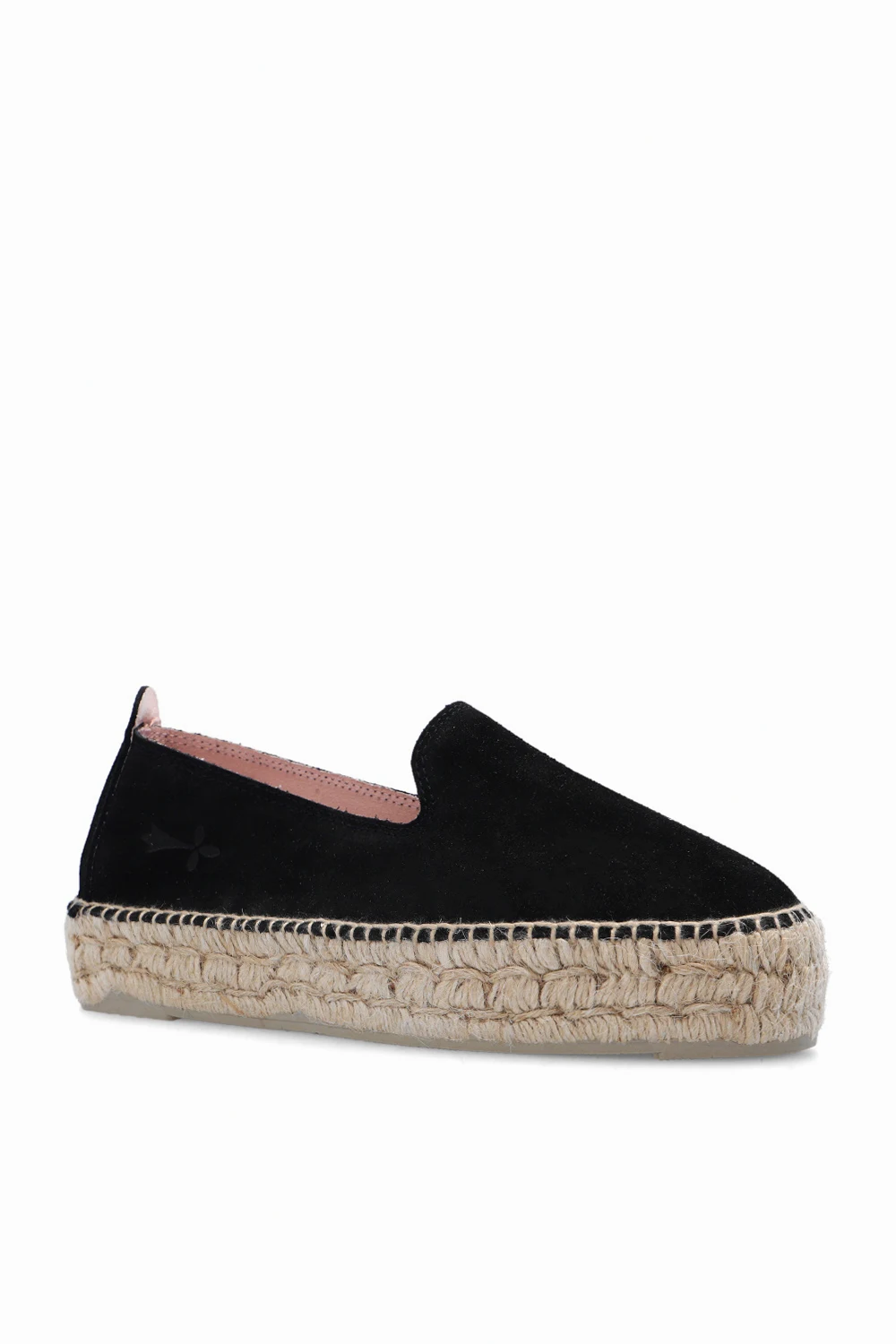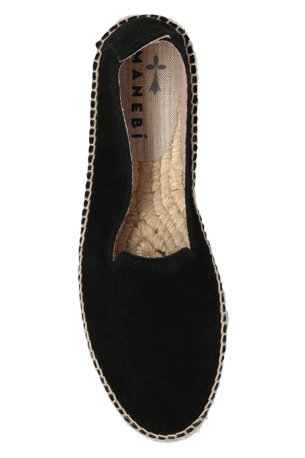 Black ‘Hamptons’ espadrilles from Manebi. Made of suede, this model features an embossed logo on the side and a natural jute sole with a thin rubber layer in grey.
