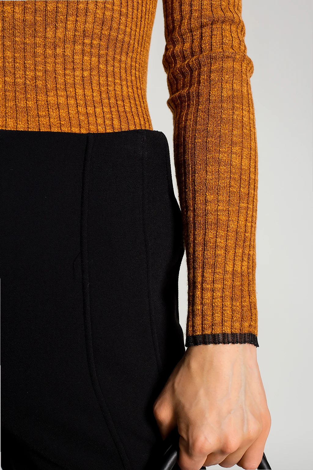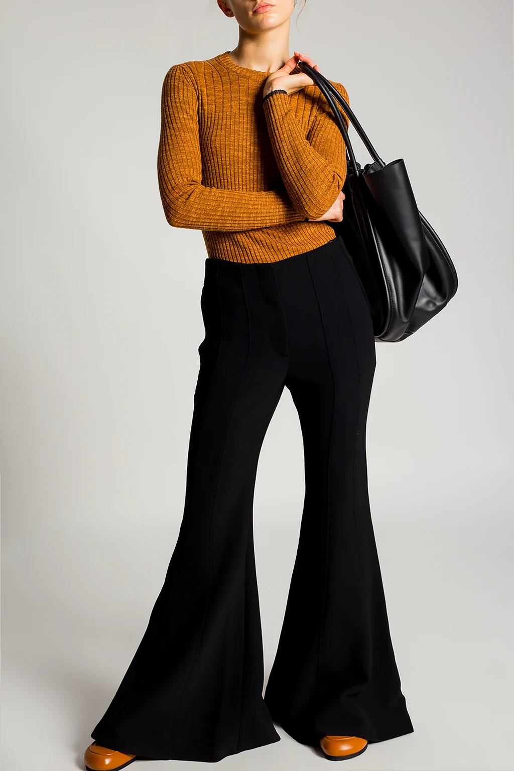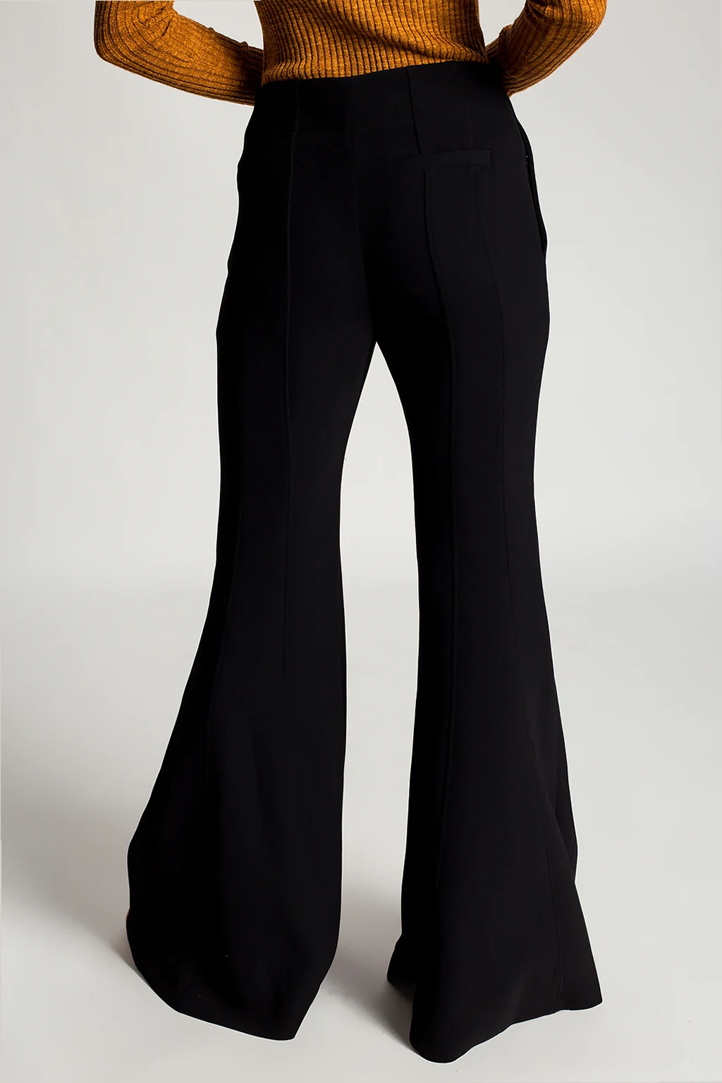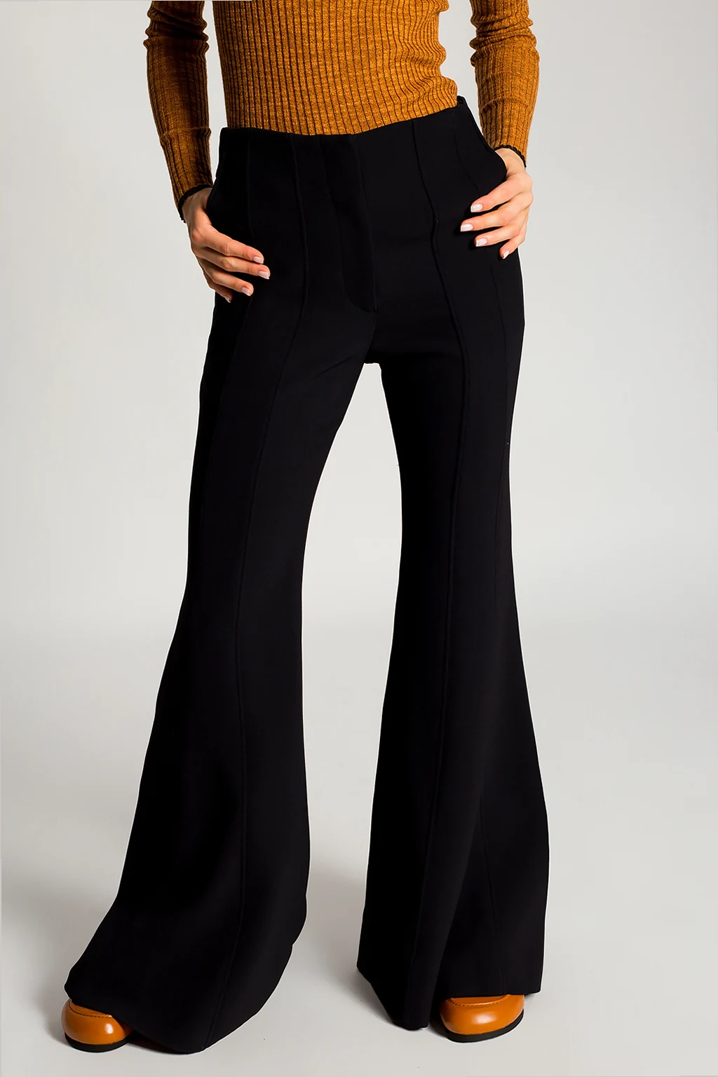 Black trousers from Proenza Schouler. Falling down with flared legs, this pair features a zip fly with hook & eye closures, three slip pockets and distinctive stitching details.