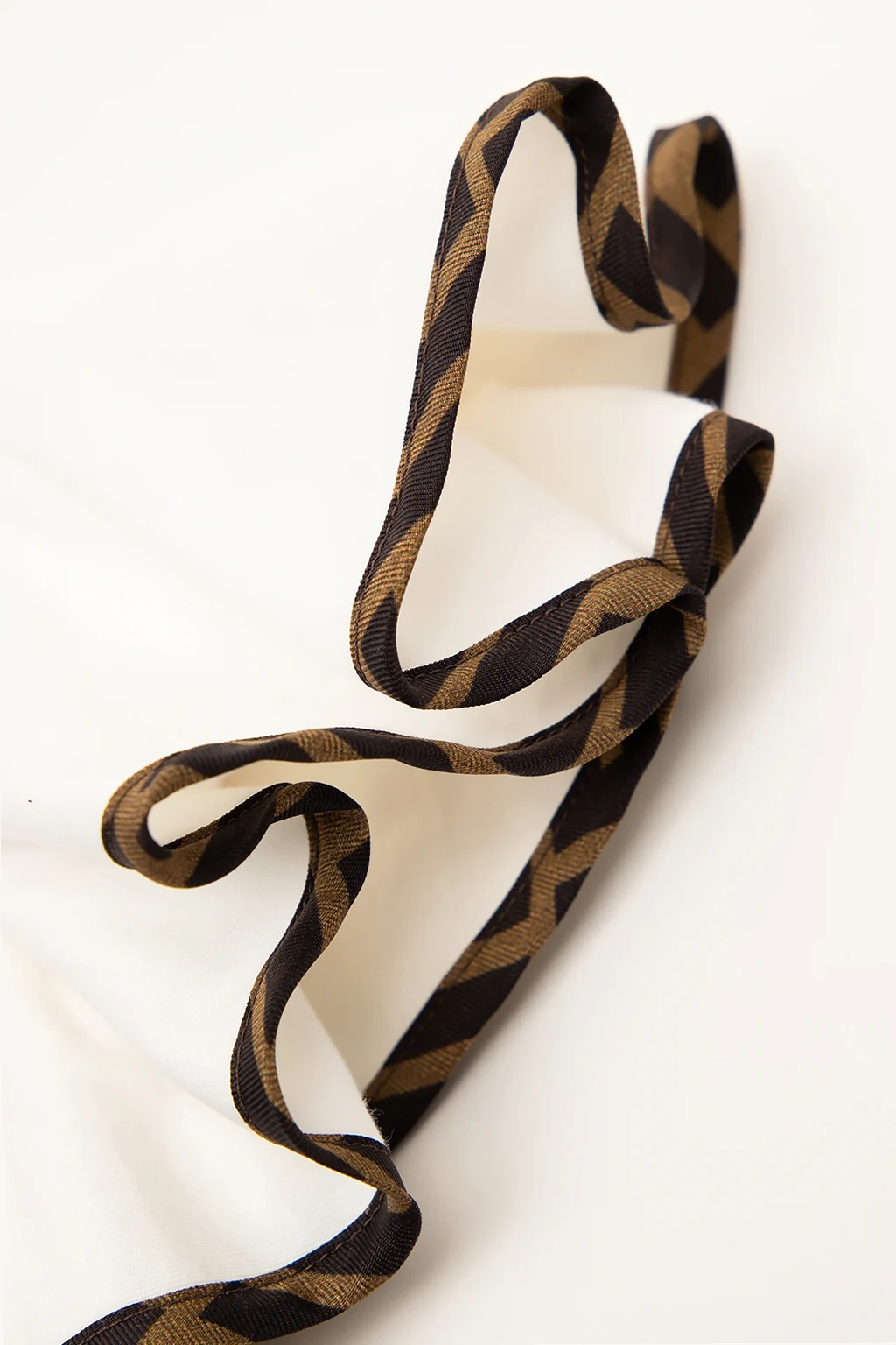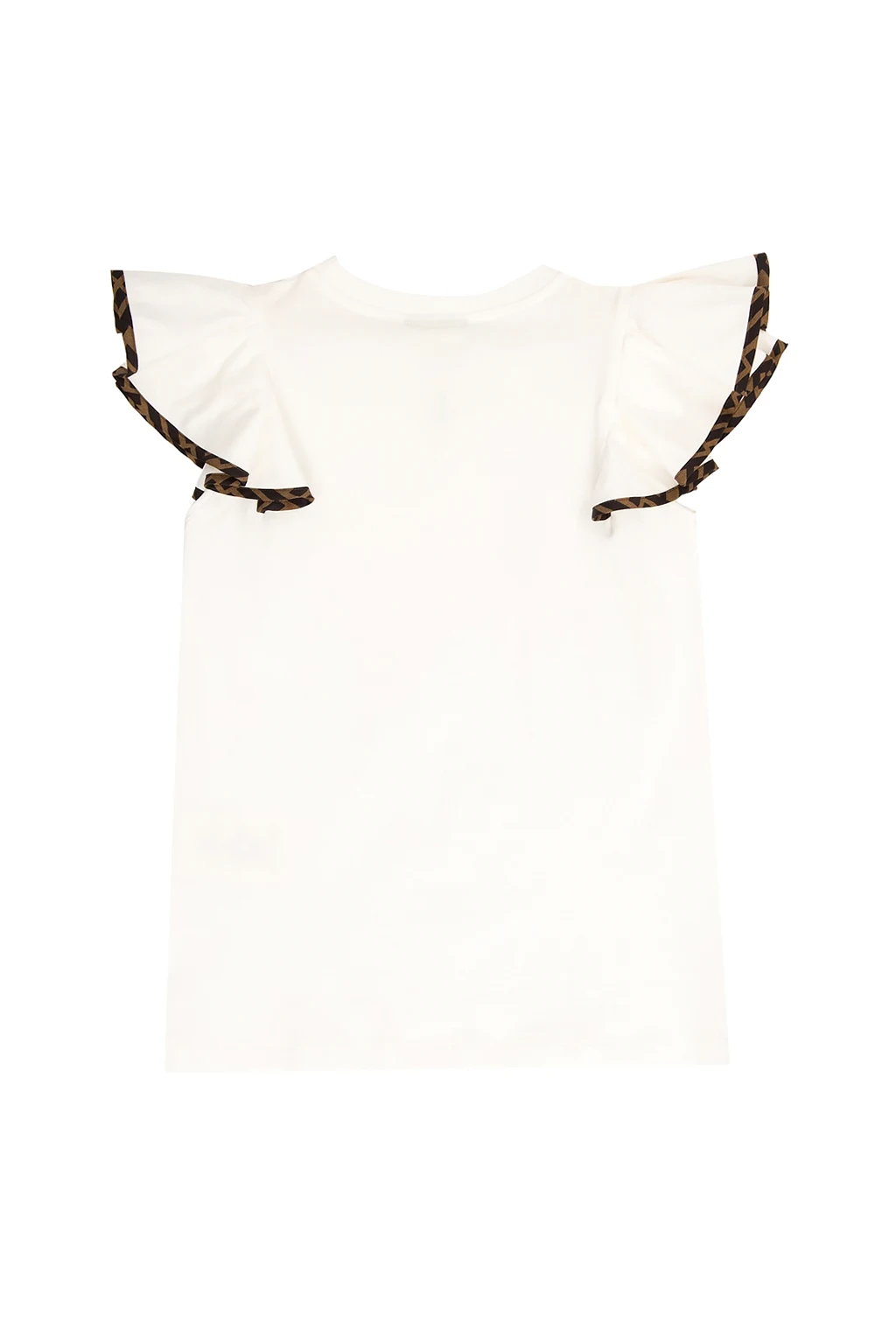 White T-shirt from Fendi. Crafted from cotton, this design is enriched with a logo embroidery and short sleeves trimmed with ruffles and inserts in brown and black.