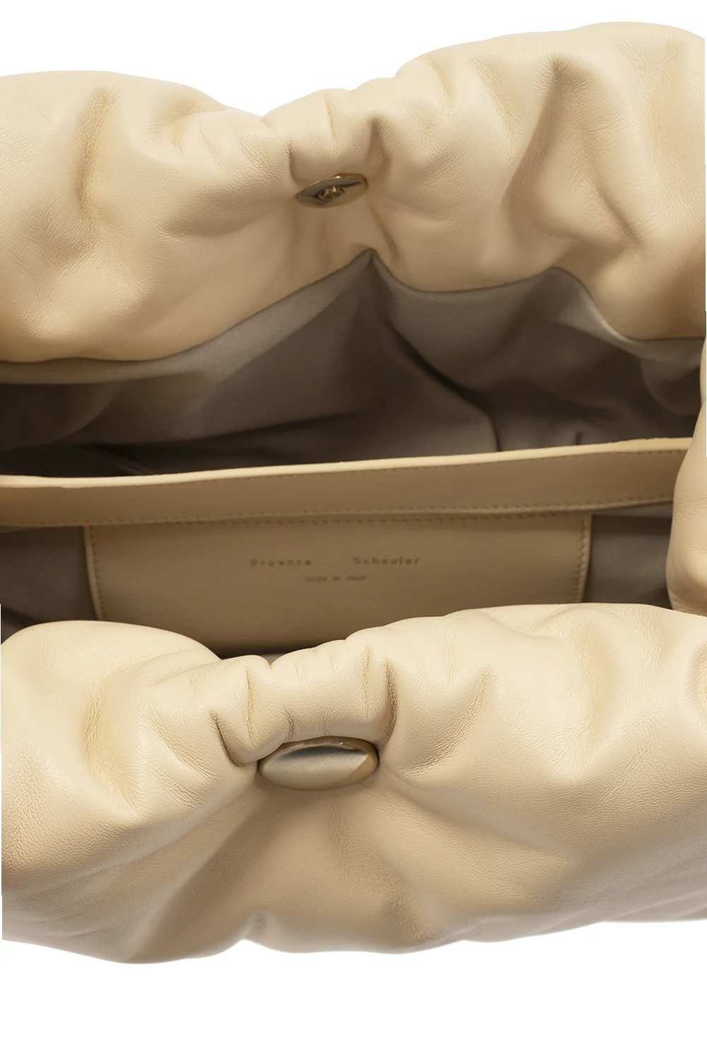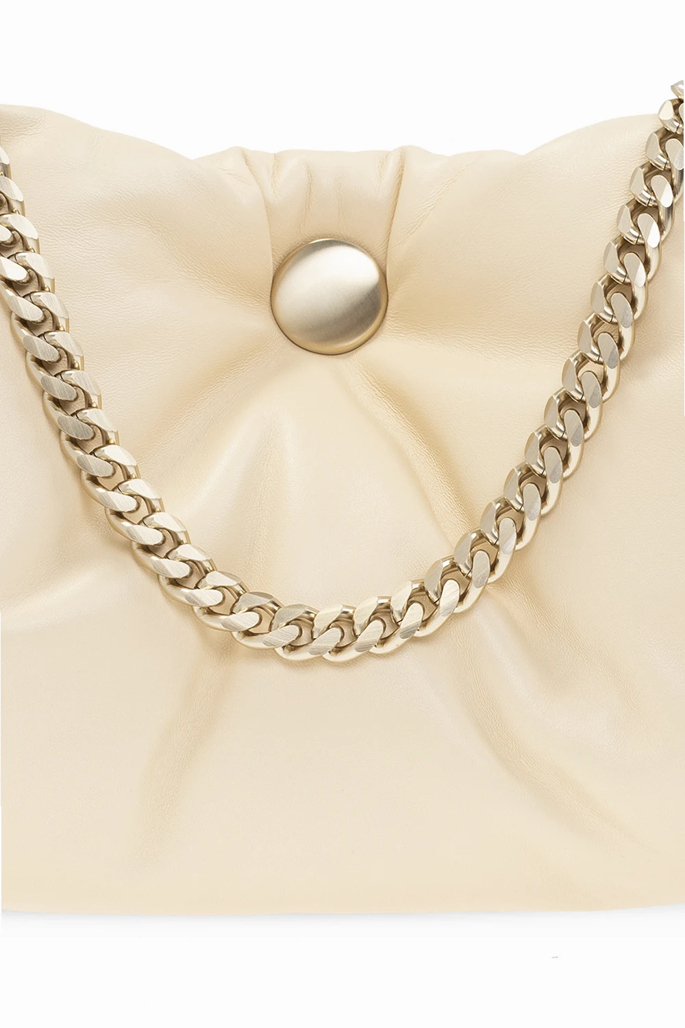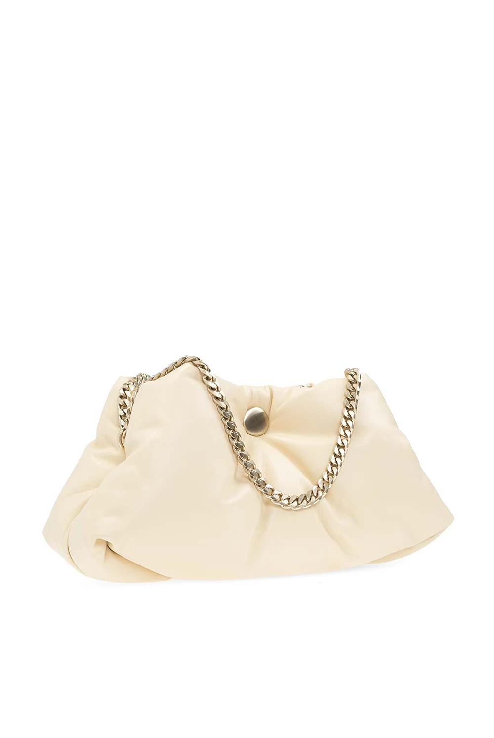 Cream ‘Tobo’ shoulder bag from Proenza Schouler. Fastened with a snap, this design features gathers, two half-round chain handles in gold-tone and two internal compartments.