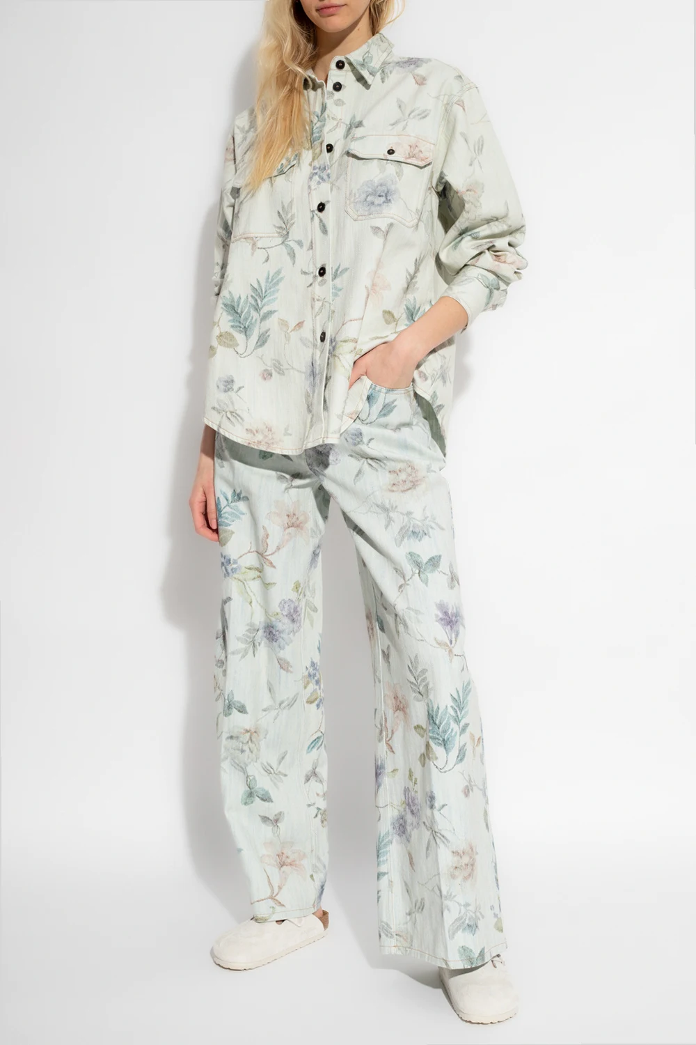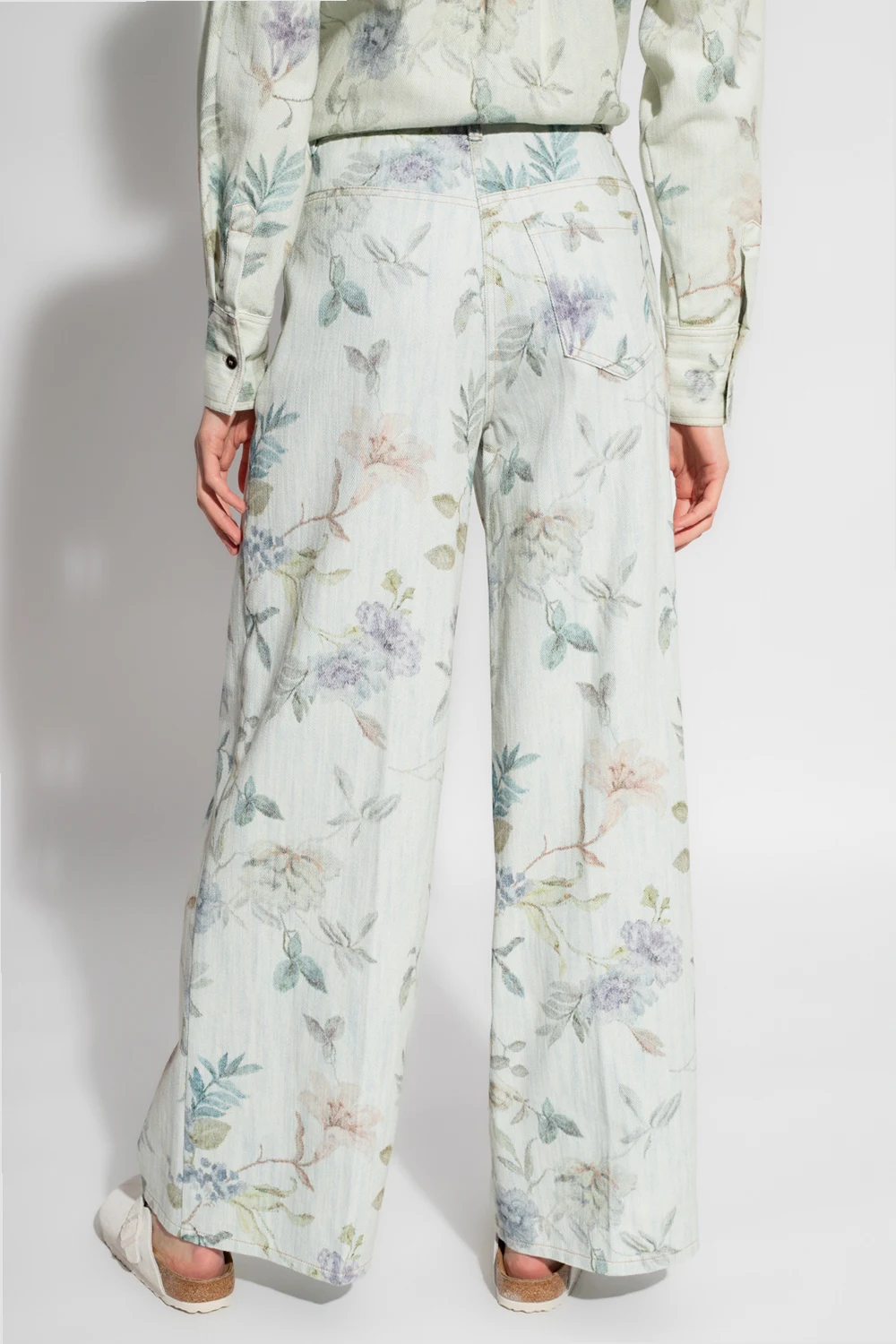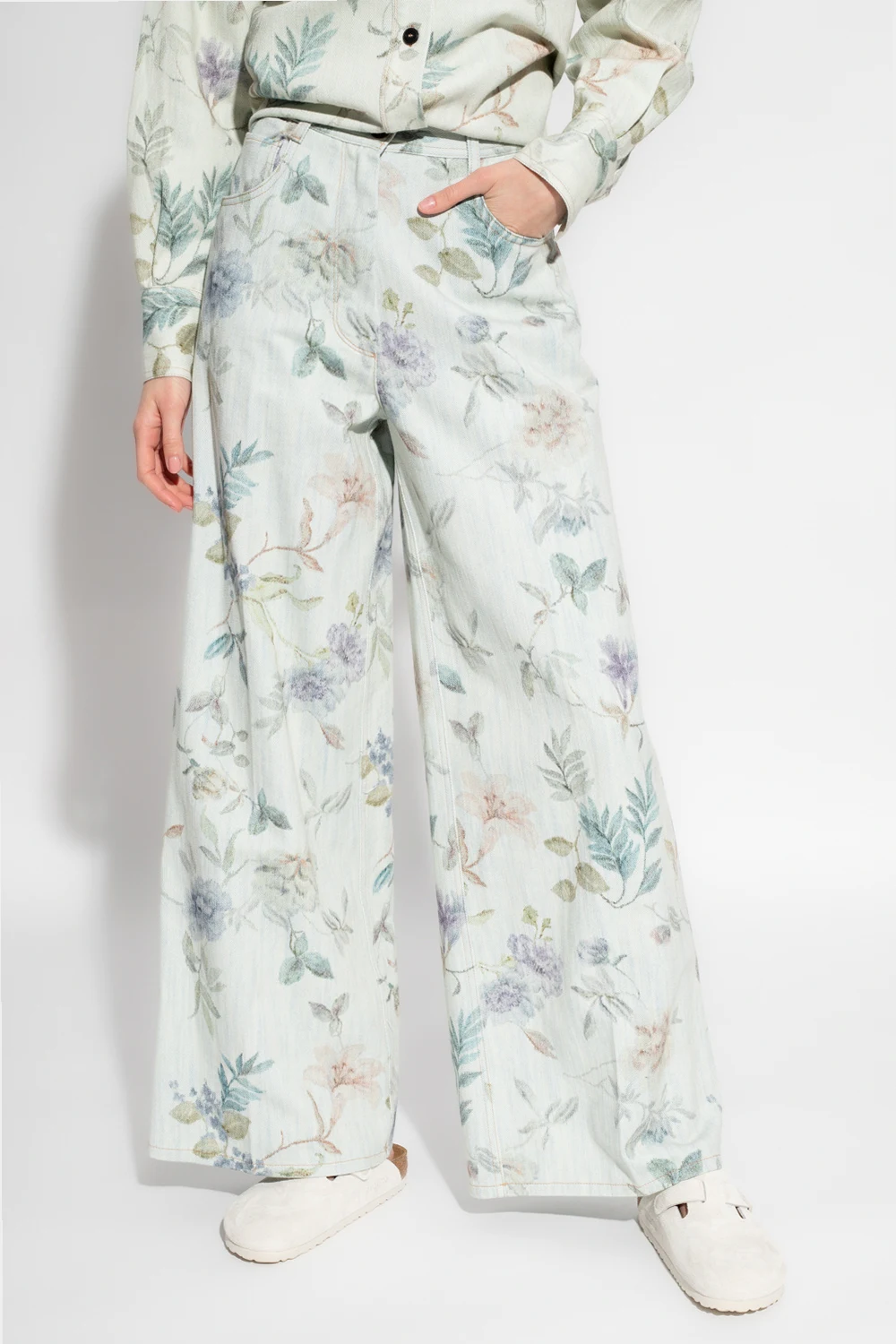 Light blue jeans from Forte Forte. Crafted with a relaxed fit, this pair features a high-rise waist, press pleats, a zip fly with a button, four slip pockets and a colourful floral motif.