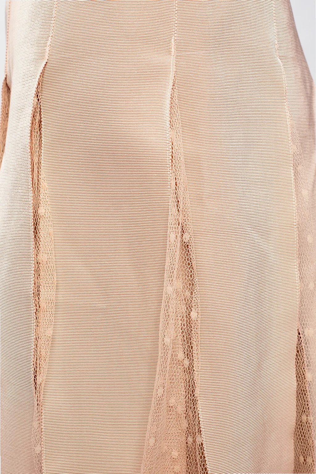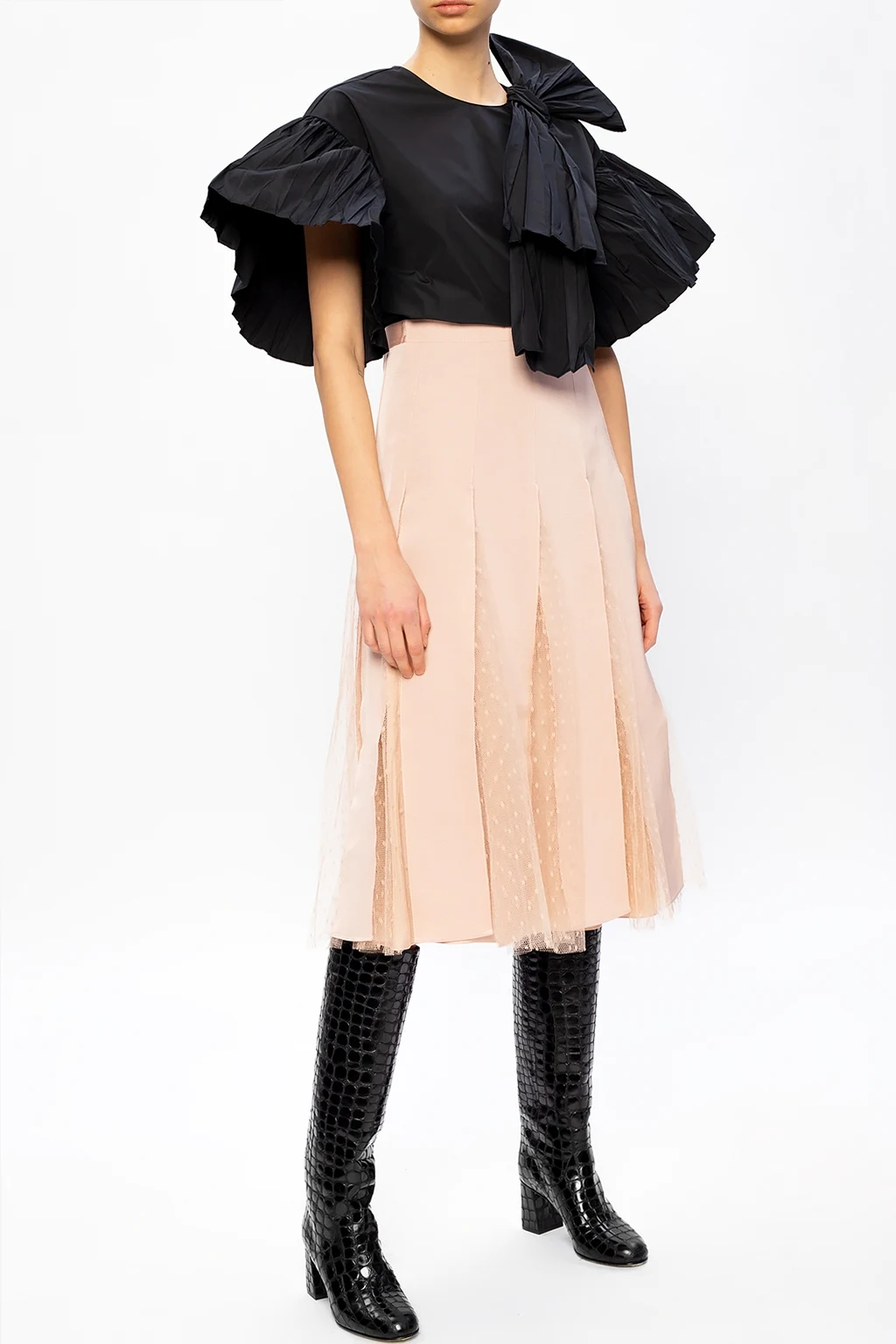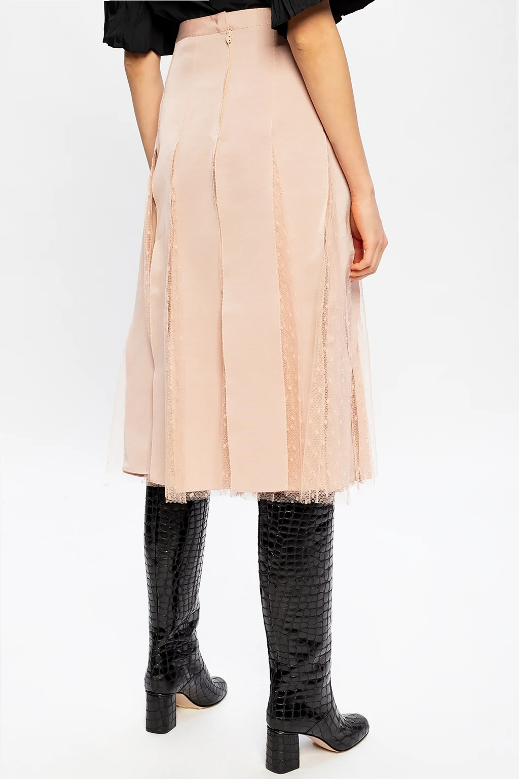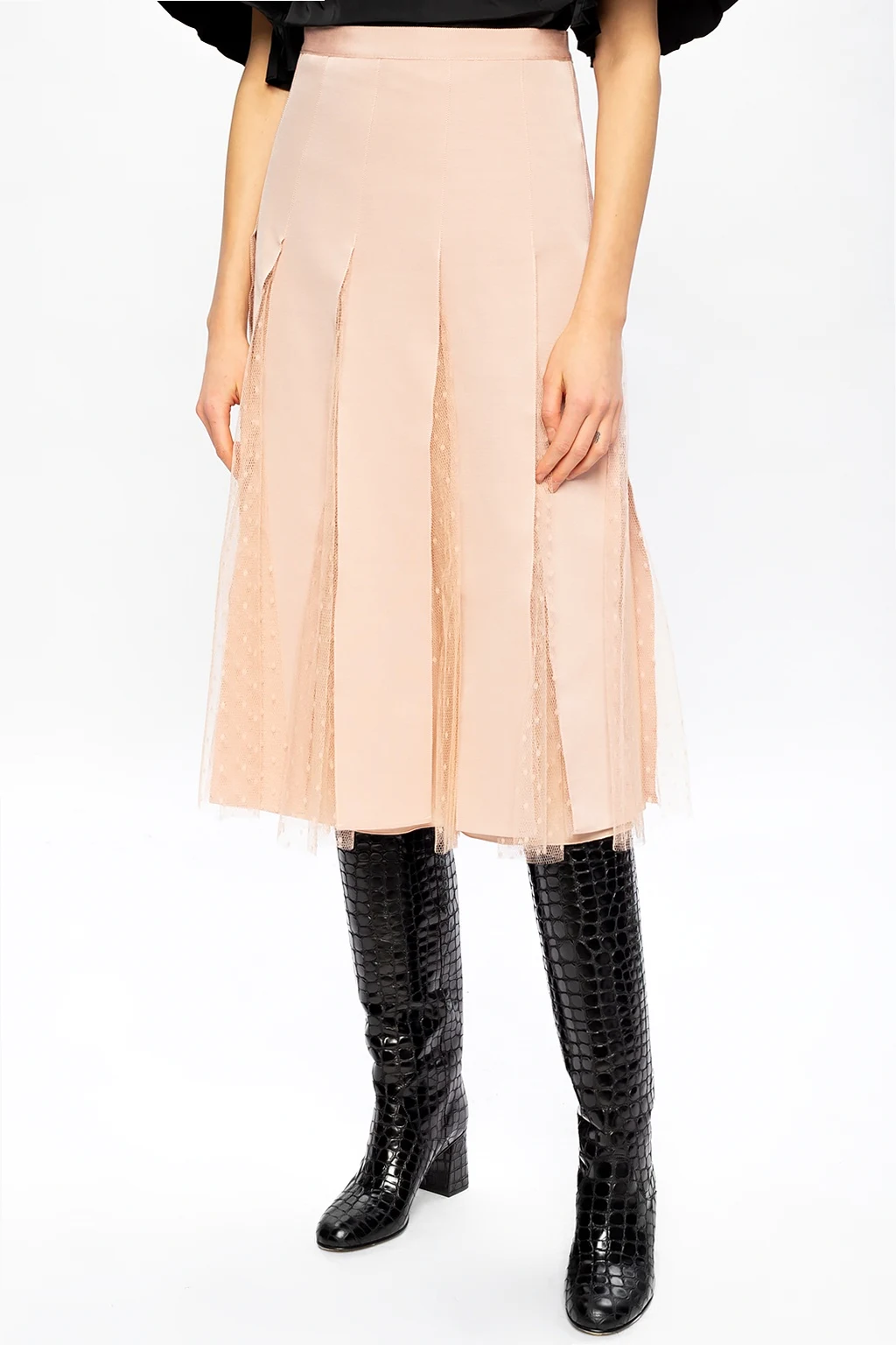 Blush pink skirt from Red Valentino. Falling down with subtle pleats, this style fastens via zip and button on the back and showcases tulle finish for a see-through sensual flair.