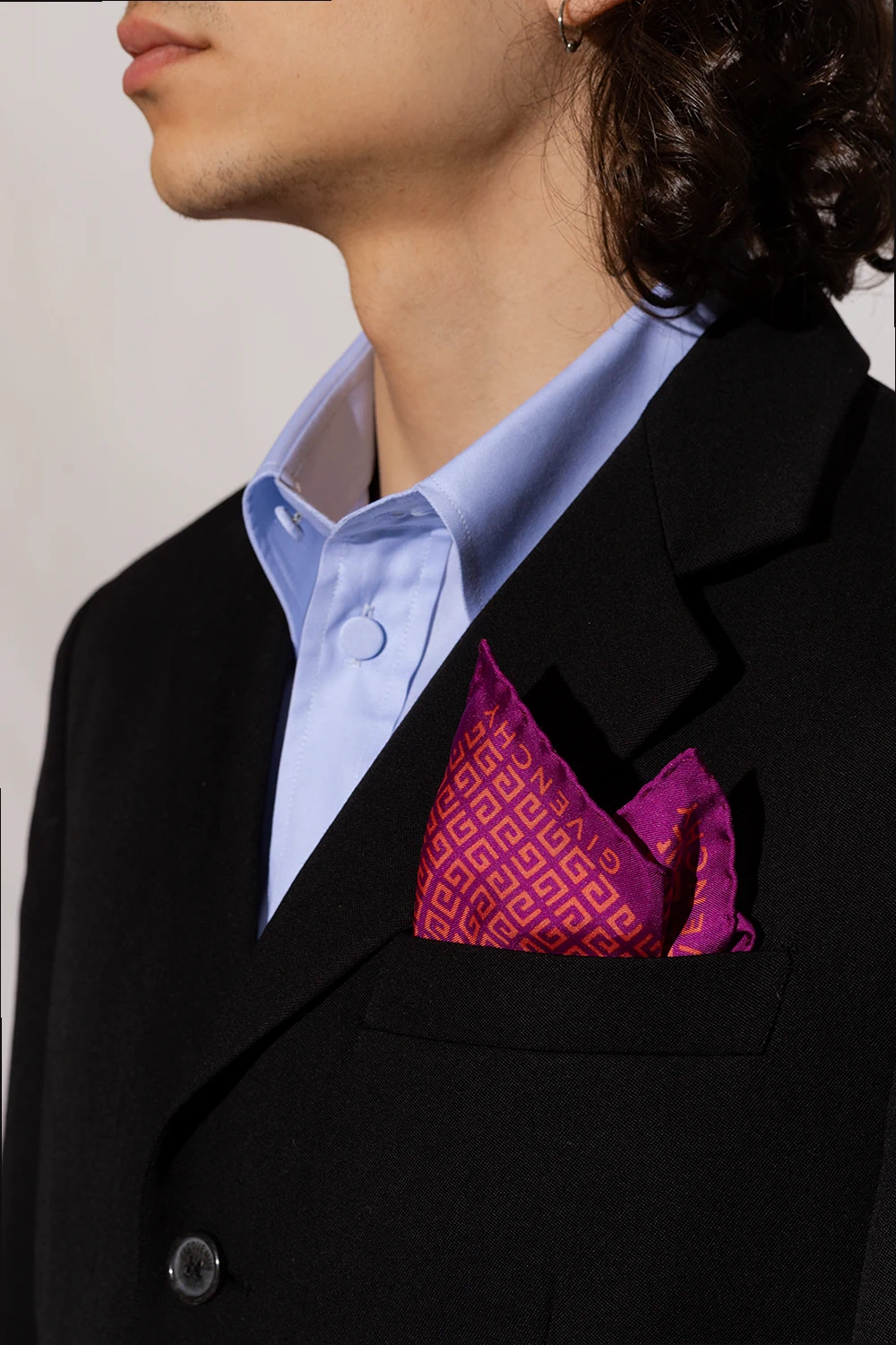 Purple and pink pocket square from Givenchy. Crafted from silk, this design features a monogram pattern.
