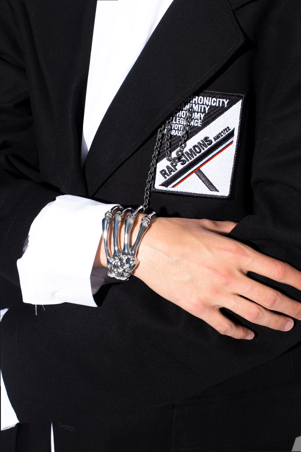 Silver-tone bracelet with an embossed logo from Raf Simons.
