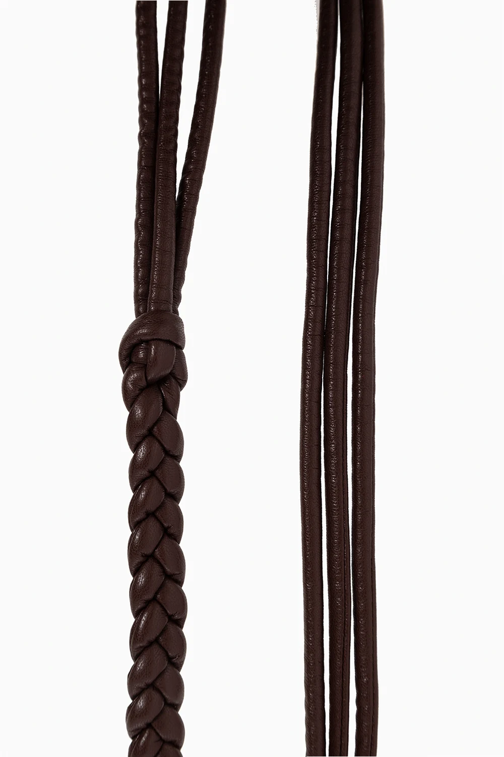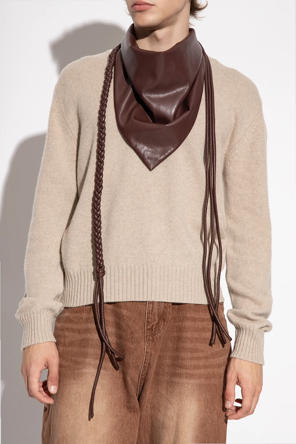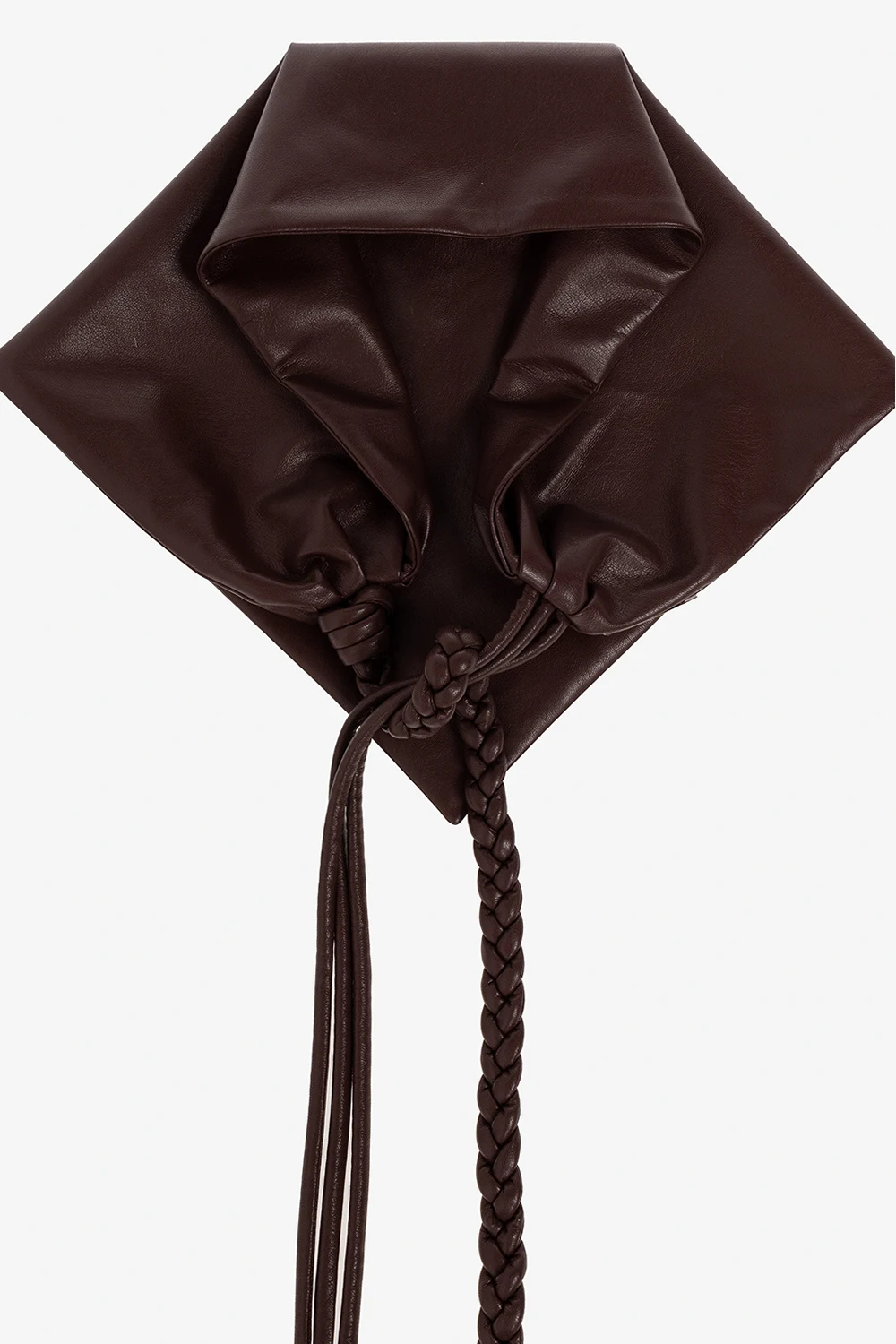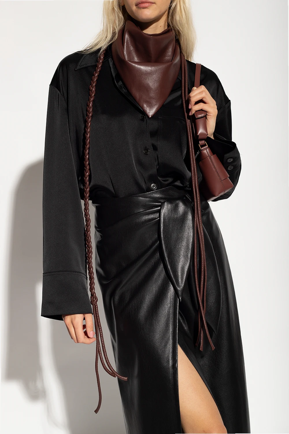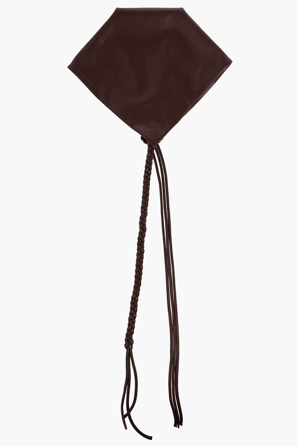 Brown ‘Brita’ triangle scarf from Nanushka. Made of OKOBOR™ vegan leather, this item features decorative tie fastening.