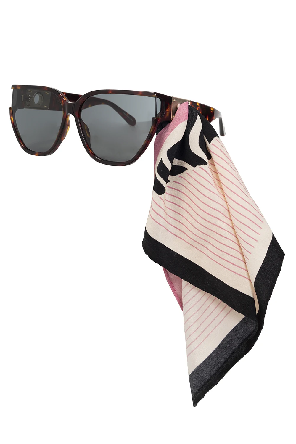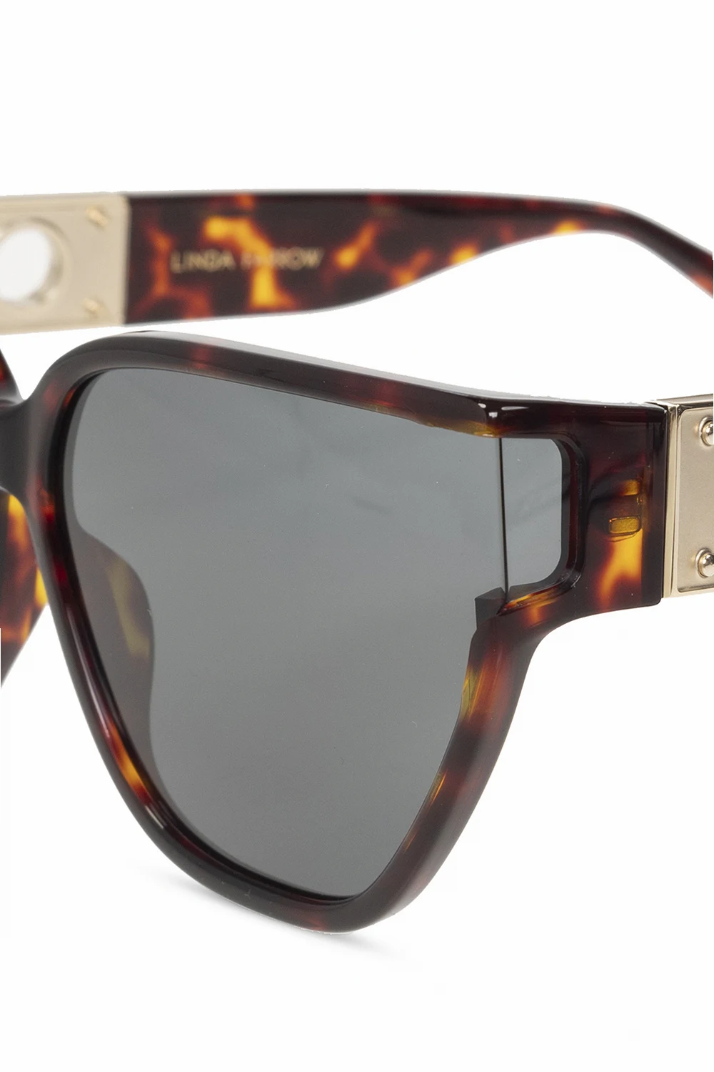 Brown and yellow ‘Sabine’ sunglasses from Linda Farrow. Handcrafted in Japan, this pair features decorative gold-tone eyelets engraved with a logo, grey certificated lenses with 100% UVA/UVB protection. Case included.