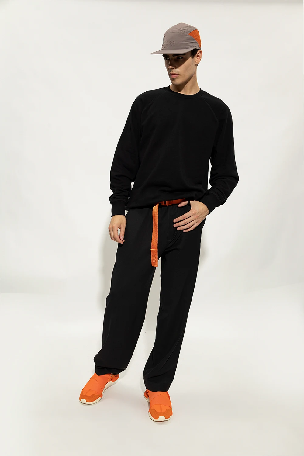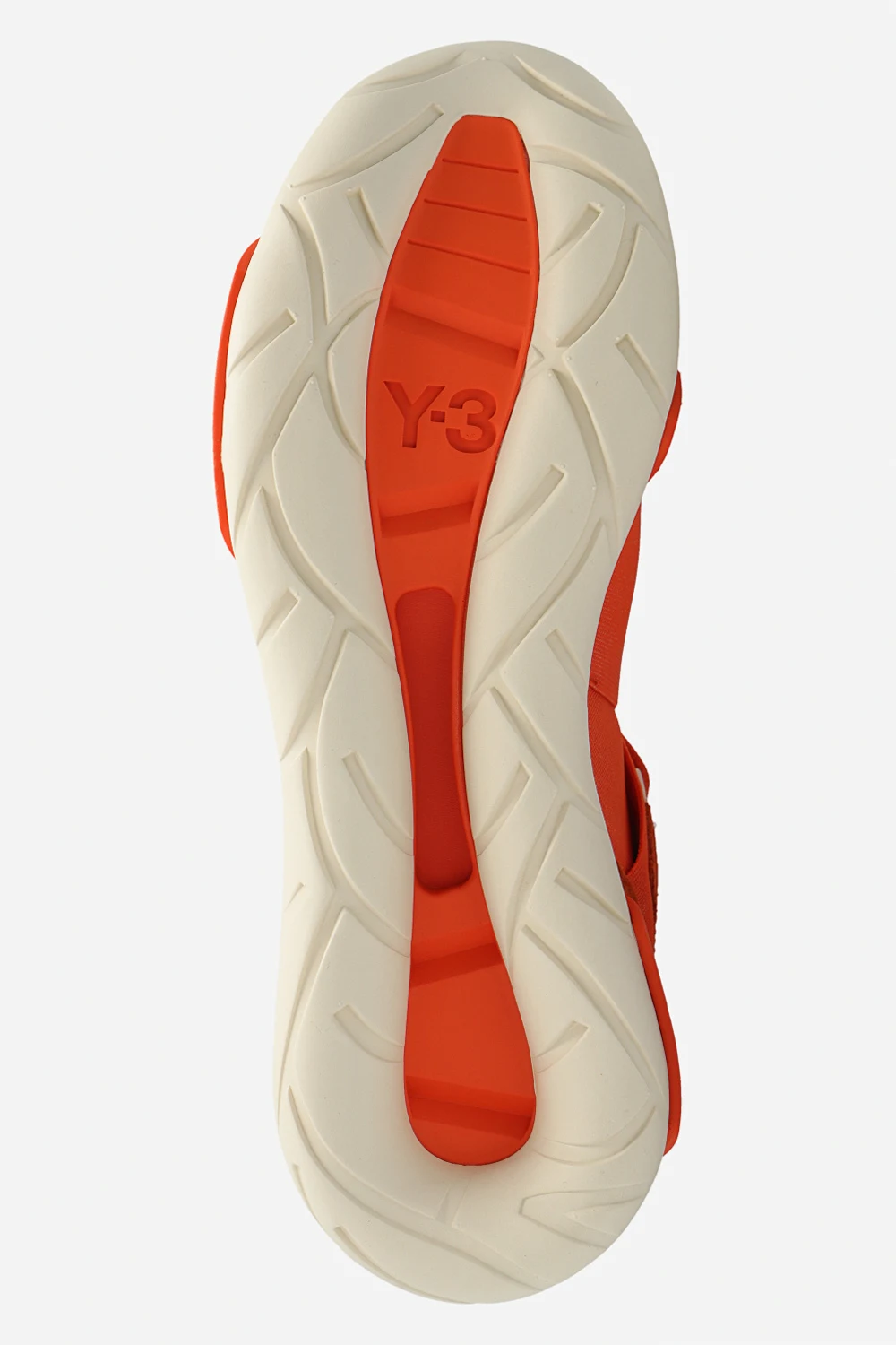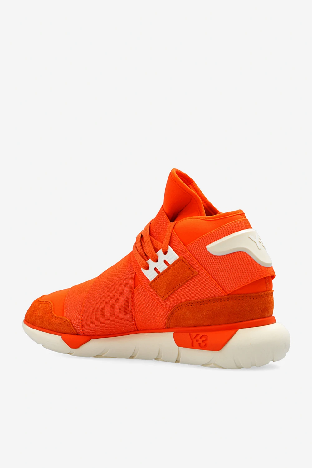 Orange ‘Qasa’ sneakers from Y-3 Yohji Yamamoto. Crafted from fabric and leather, this lace-up model sits on a cream and orange rubber sole and showcases an elastic tape on the front and an embossed logo.