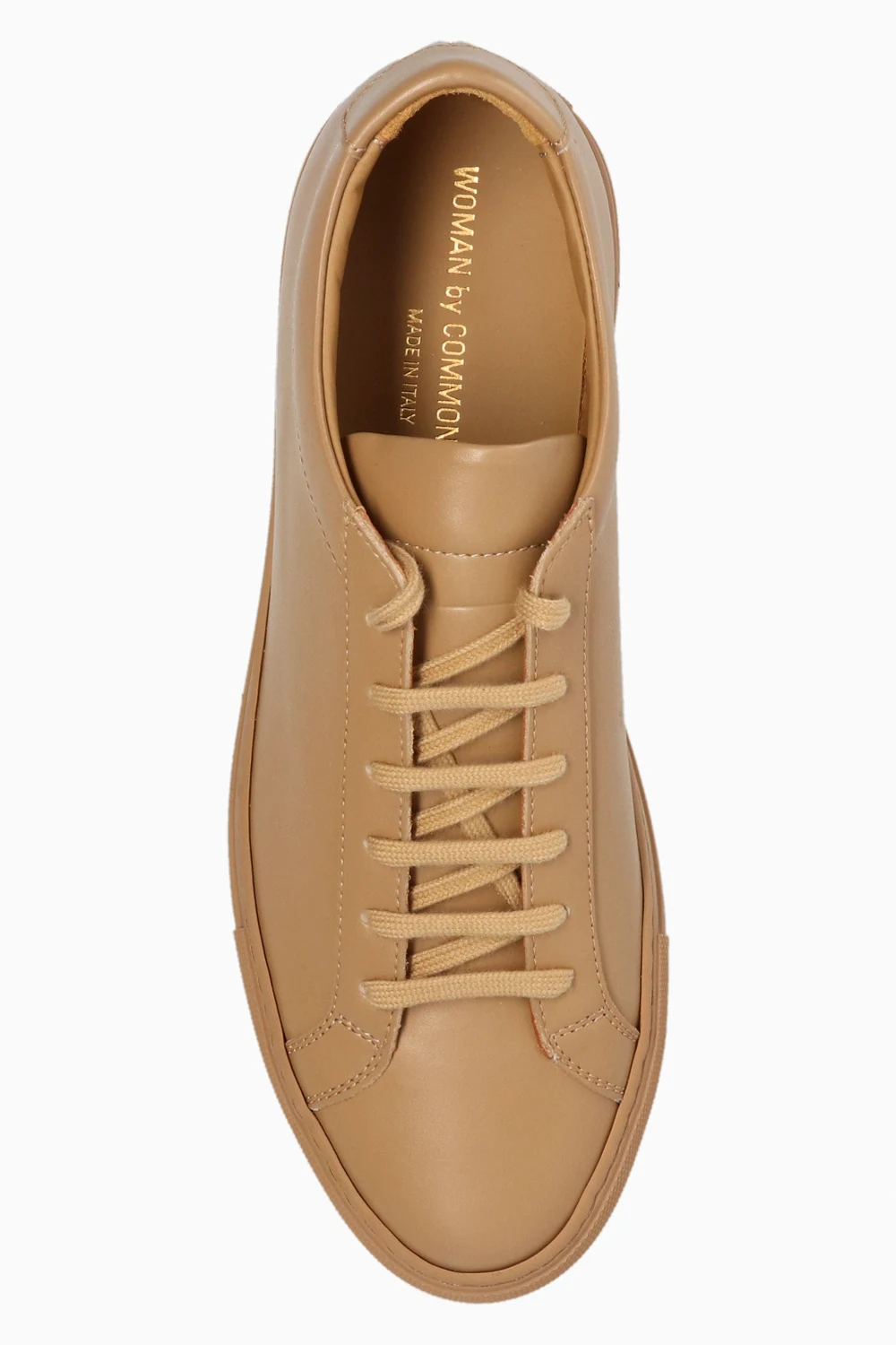 Brown ‘Achilles’ sneakers from Common Projects. Crafted from leather, this lace-up pair features embossed numbers in gold-tone and a brown rubber sole.