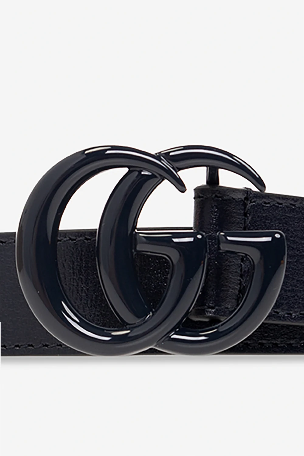 Navy blue belt from Gucci Kids. Made of leather, this item features a logo-shaped buckle.