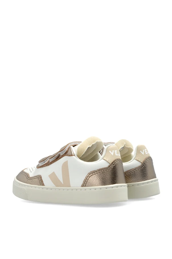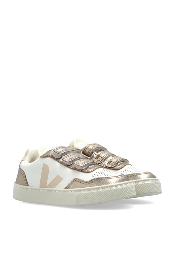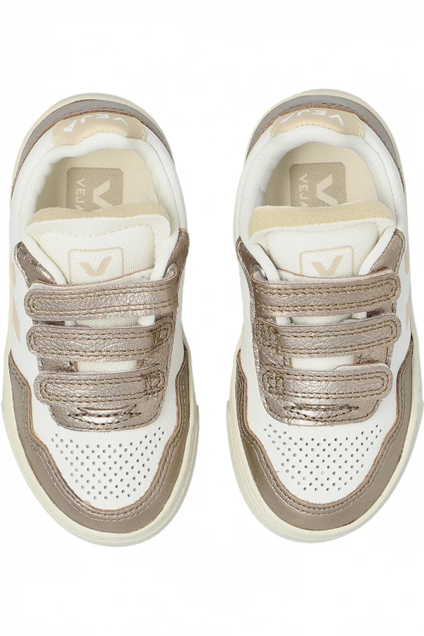 Sportschuhe SMALL V-90 O.T. LEATHER sind ein anspruchsvoller Vorschlag der Marke Veja Kids, der zeitlose Ästhetik mit Umweltbewusstsein verbindet. Das Modell zeichnet sich durch eine klassische, niedrig geschnittene Sneaker-Form aus, die harmonisch mit metallischen Akzenten in Roségold abgerundet wird. Das Obermaterial aus edlem Leder sowie die cremefarbene, strapazierfähige Gummisohle zeugen von höchster Handwerkskunst.