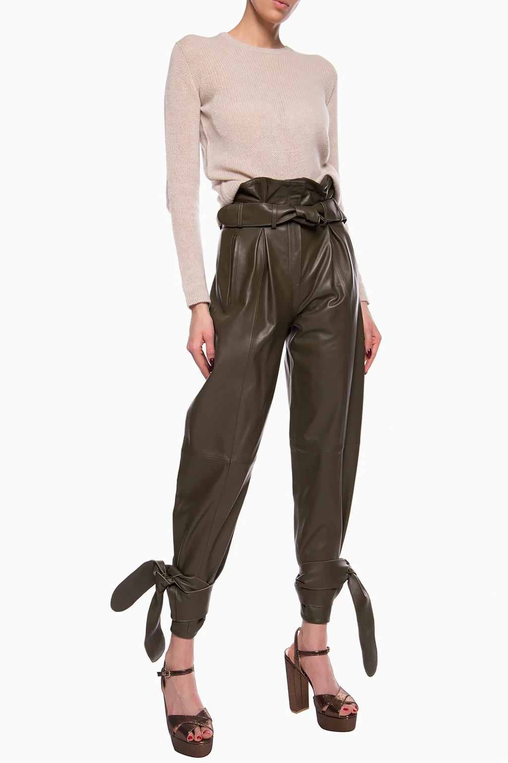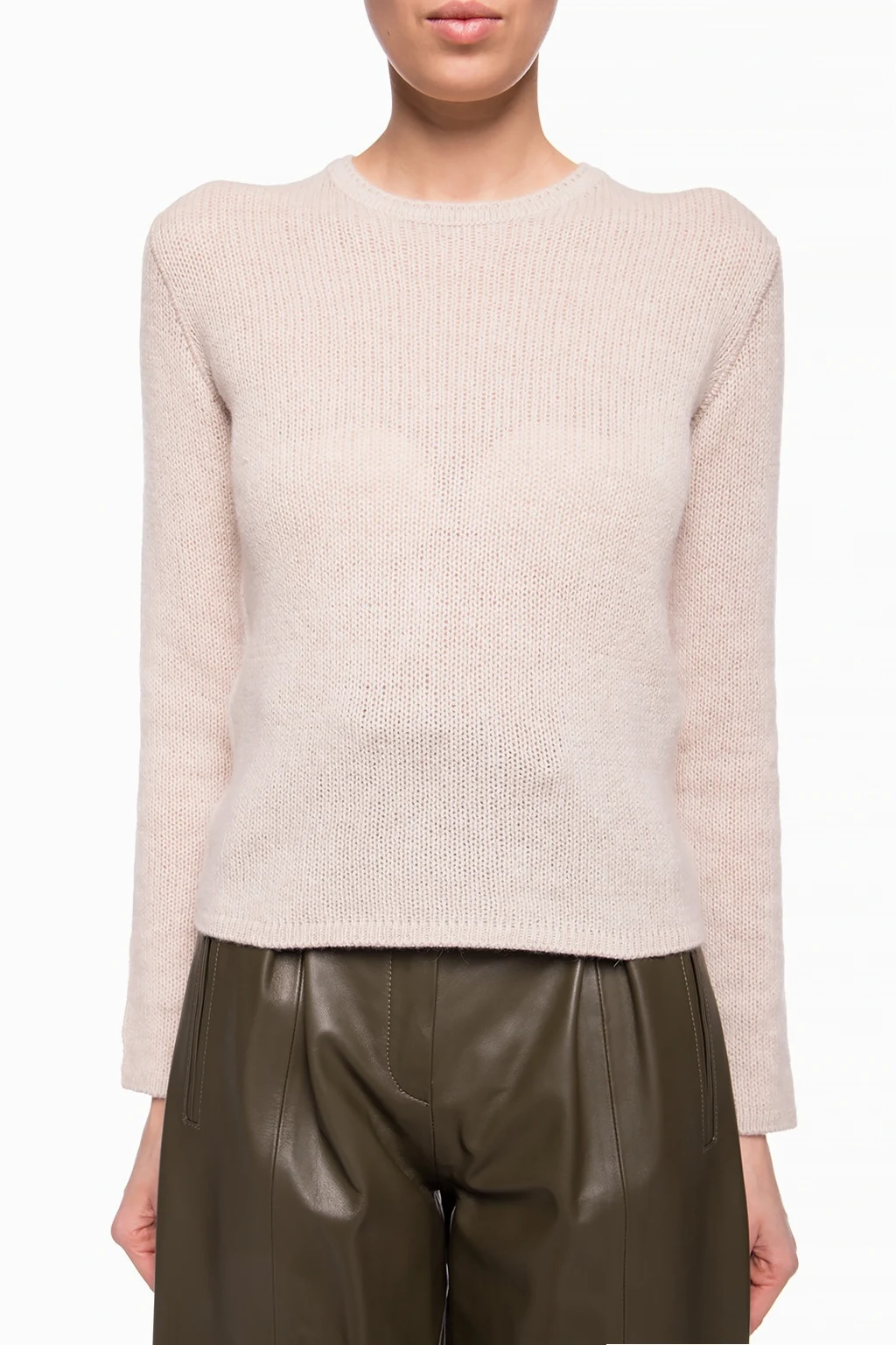 Beige woven sweater from The Row. Made of cashmere. Round neck.