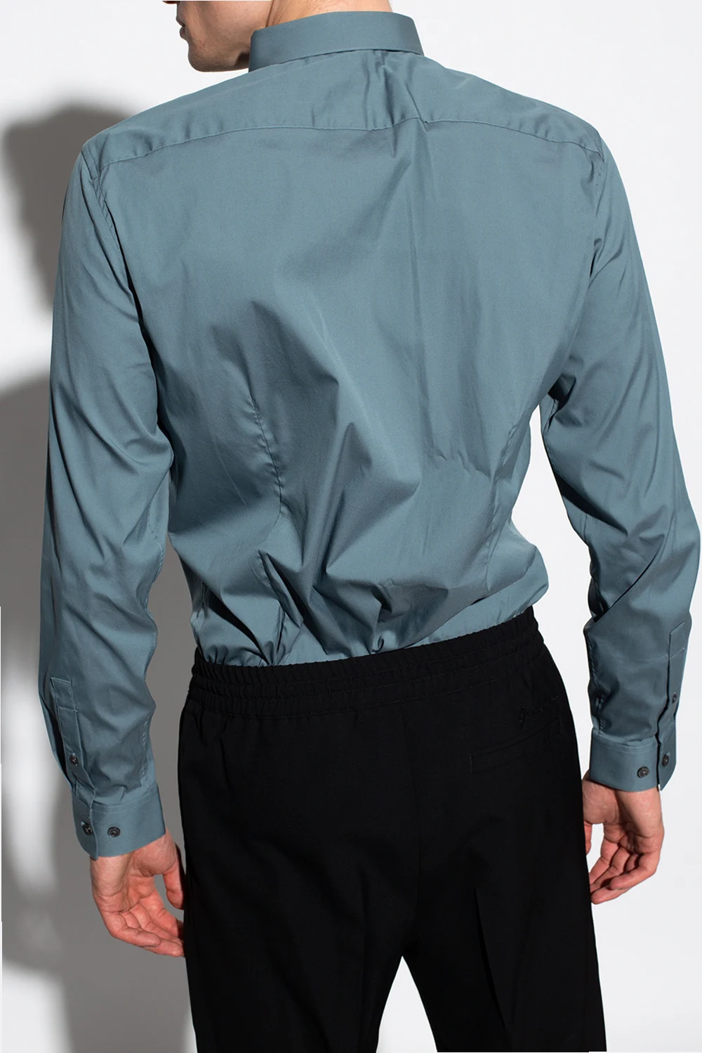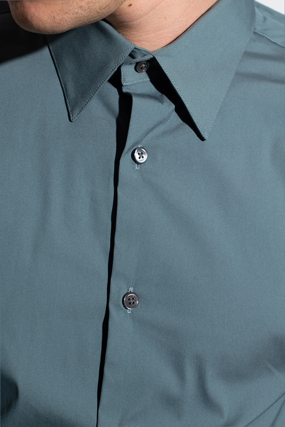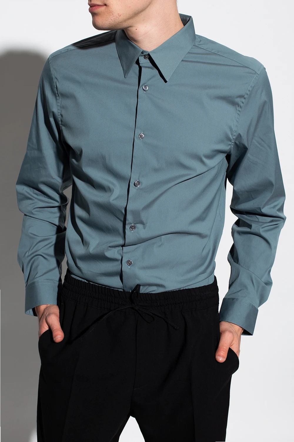 Green and grey shirt from Theory. Crafted from cotton with a tailored fit, this style features a point collar, button fastenings and long sleeves.