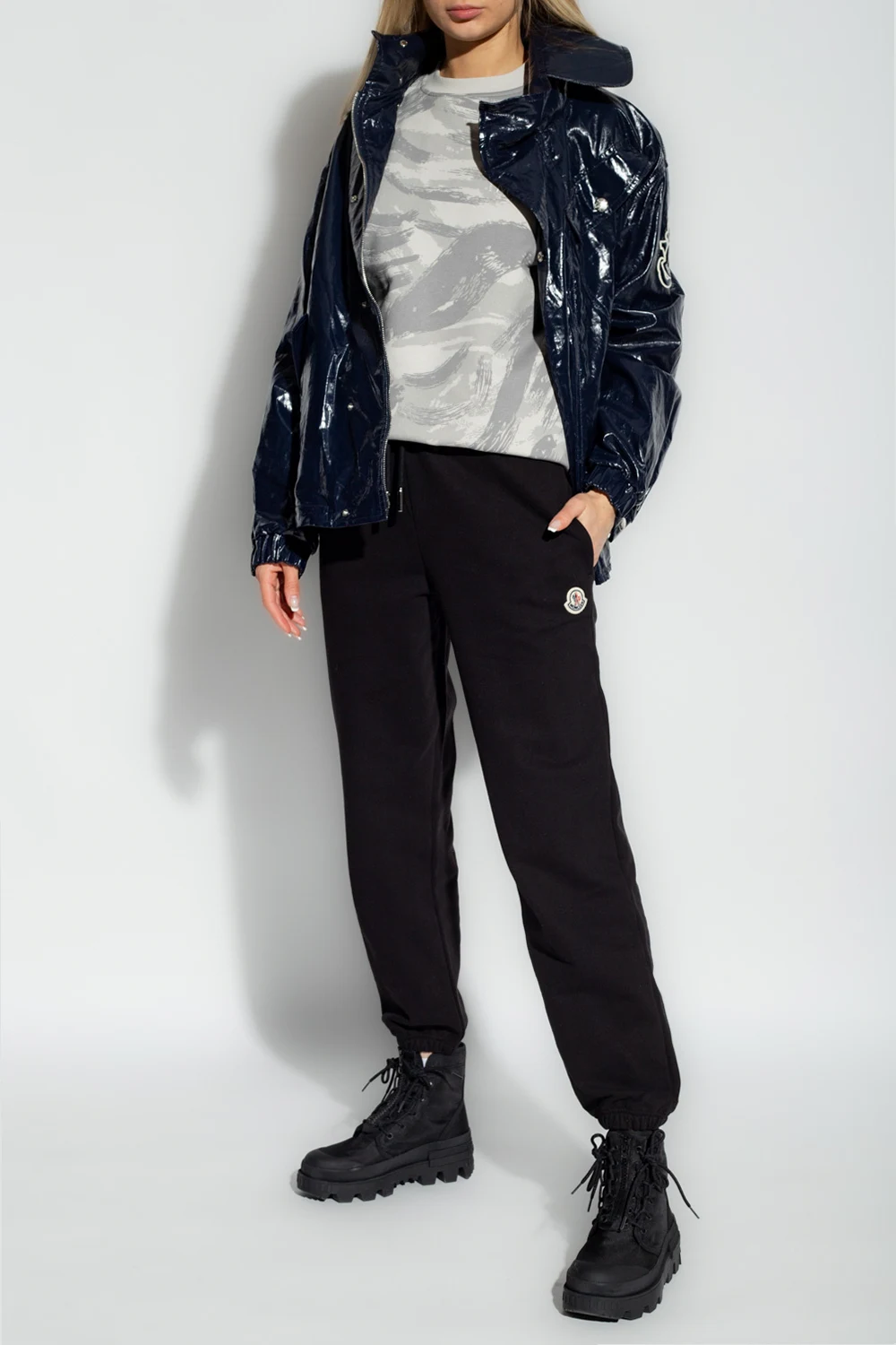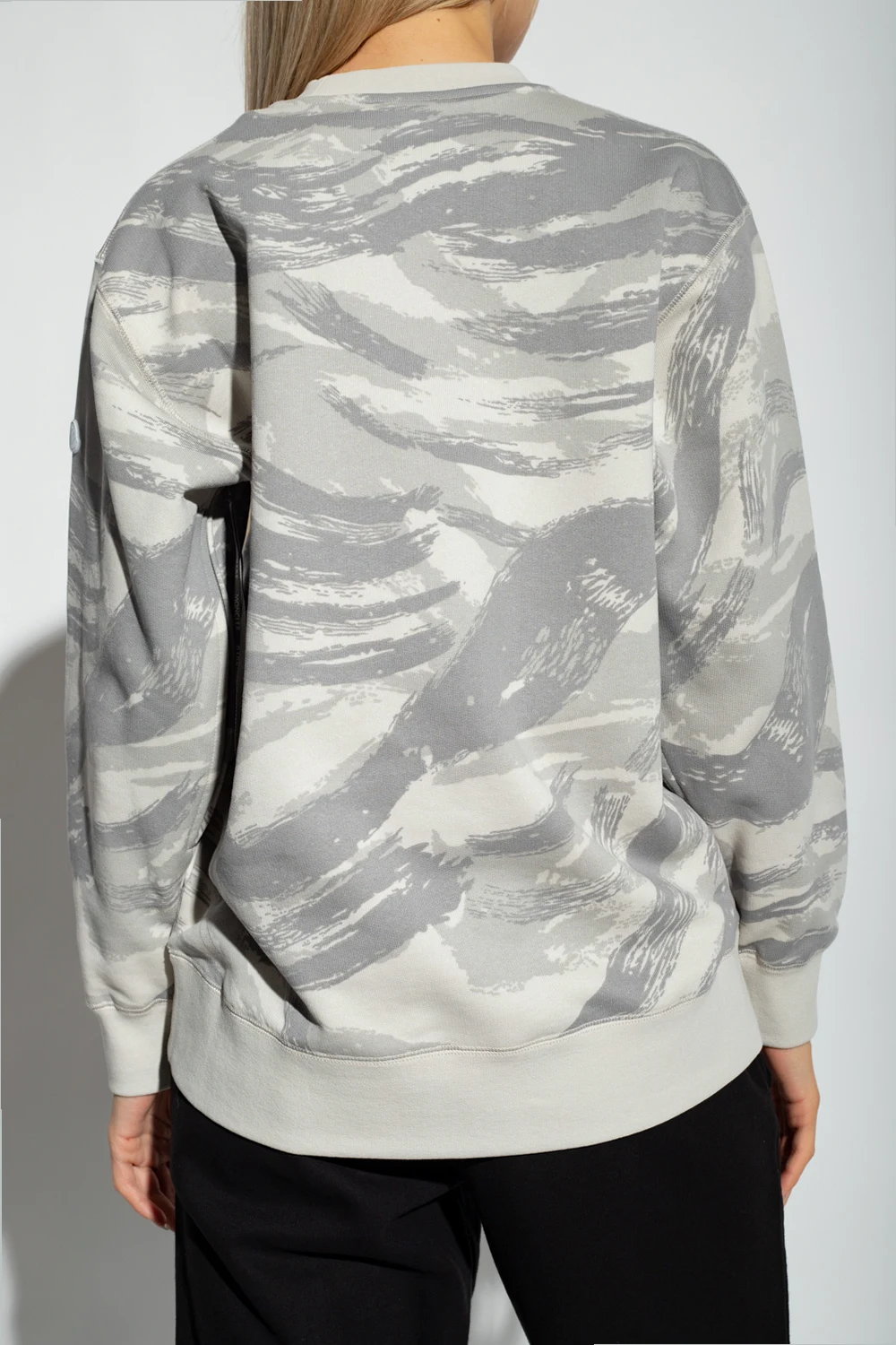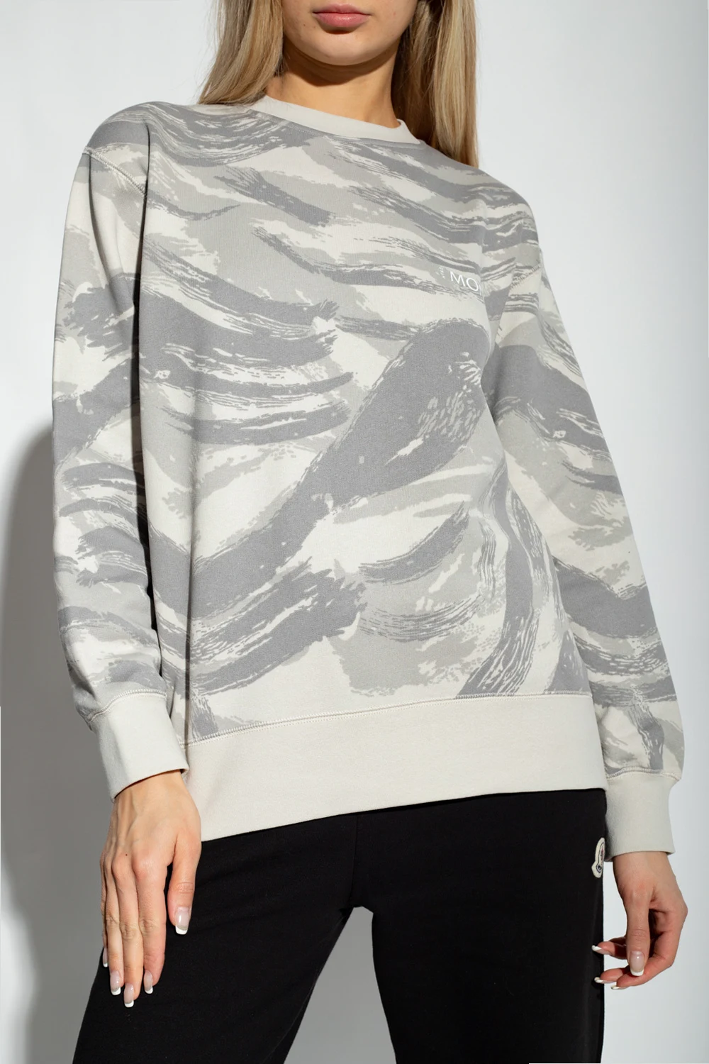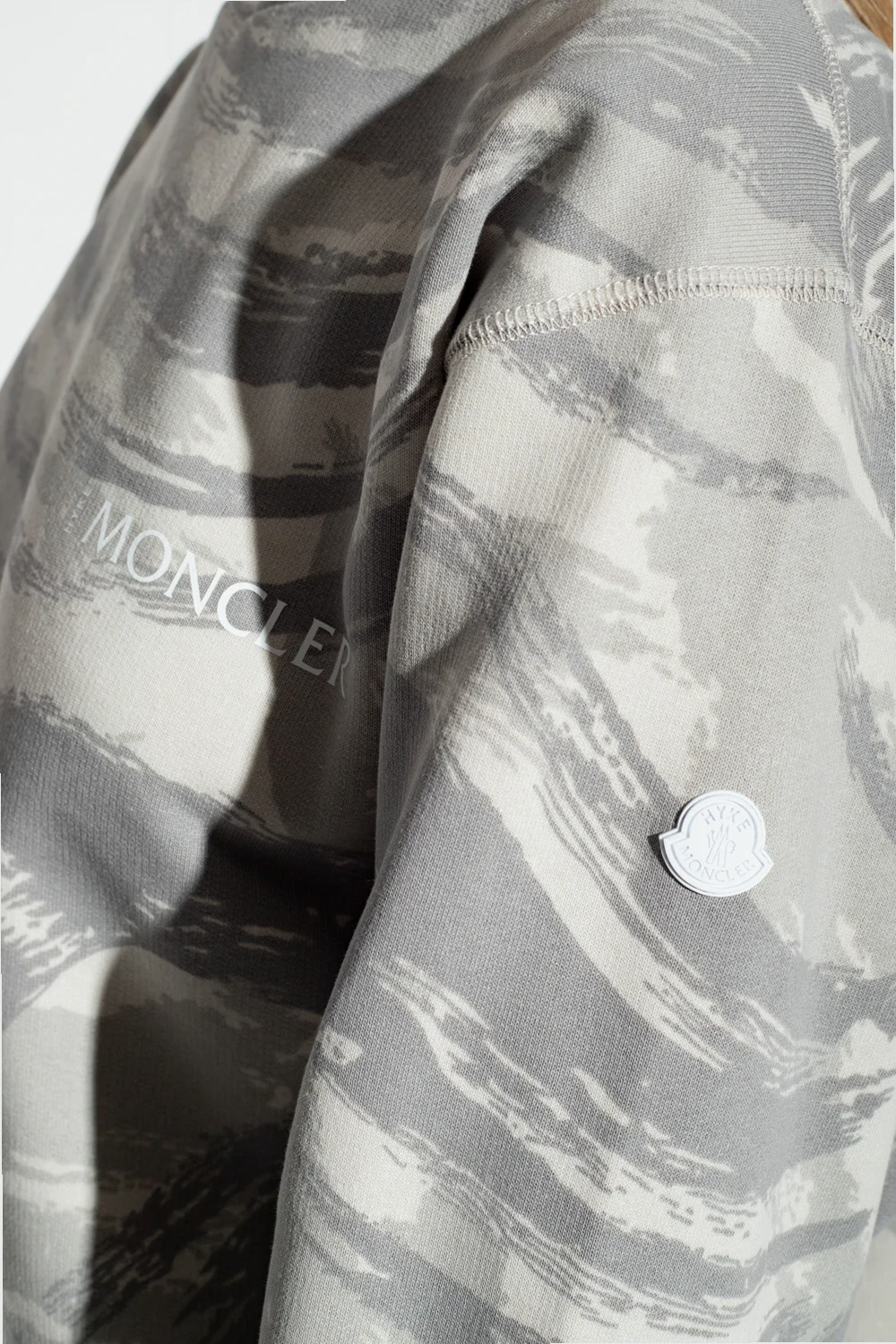 Grey crewneck sweatshirt from Moncler Genius, the ‘4 Moncler Hyke’ collection. Made of cotton, this garment features a white logo print, pattern, long sleeves with zip details and ribbed edges.