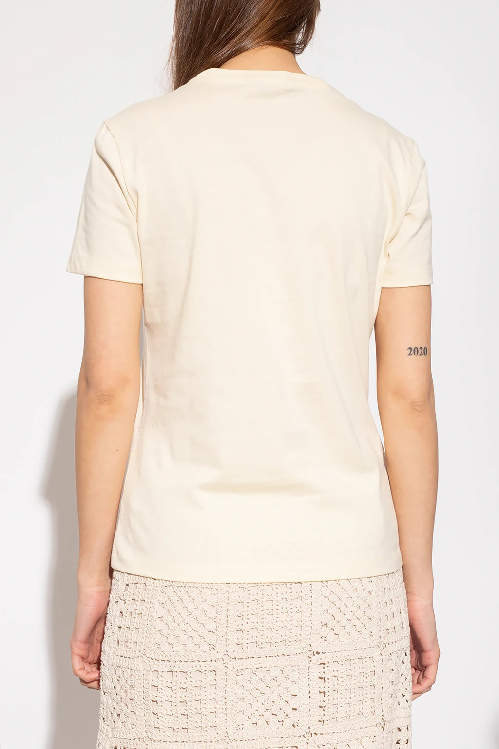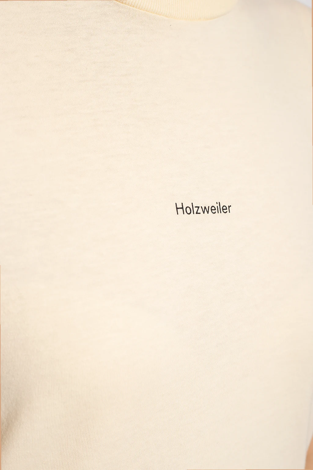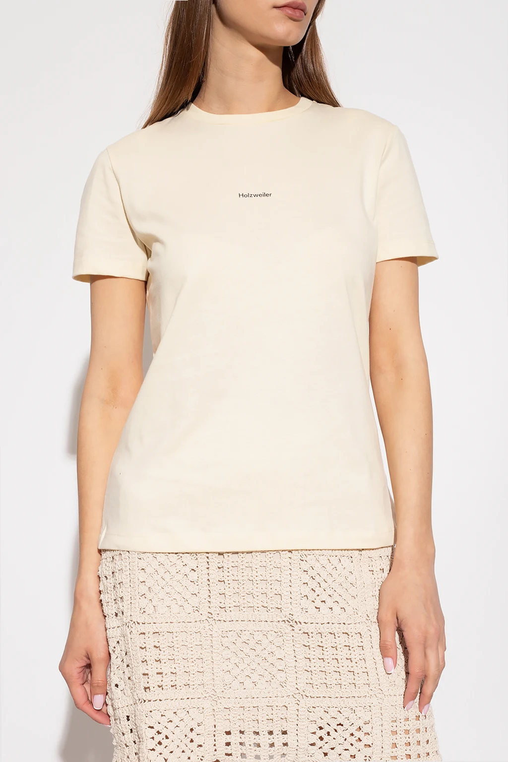 Yellow ‘Suzana’ T-shirt from Holzweiler. Crafted from organic cotton, this style features short sleeves, an elasticated collar and a black graphic print with the brand's logo.