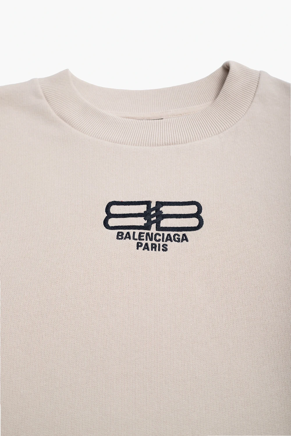 Light beige crewneck sweatshirt from Balenciaga Kids. Made of cotton, this garment features a black logo embroidery and ribbed edges.