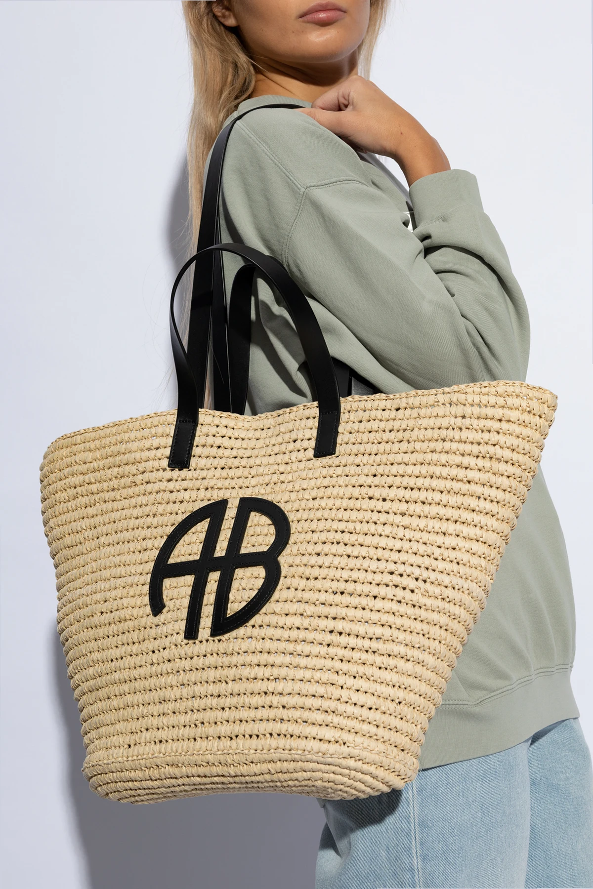 Heute präsentieren wir Ihnen die ‘Palermo’ Shopper-Tasche der renommierten Designerin Anine Bing . Sie ist die perfekte Wahl für Frauen, die Funktionalität mit raffiniertem Stil kombinieren möchten. Die beige Farbgebung, ergänzt durch schwarze, horizontale Streifen, verleiht dem Produkt einen eleganten und feinen Charakter, während das geflochtene Zellulosefaser-Material für Leichtigkeit und Tragekomfort sorgt.