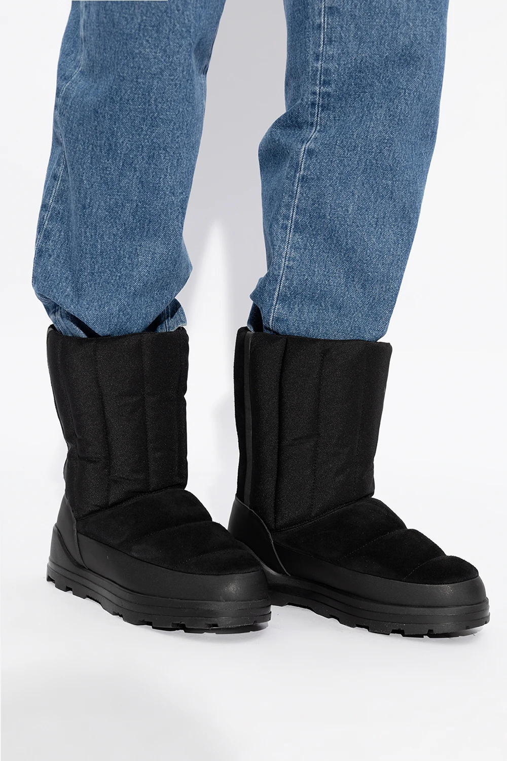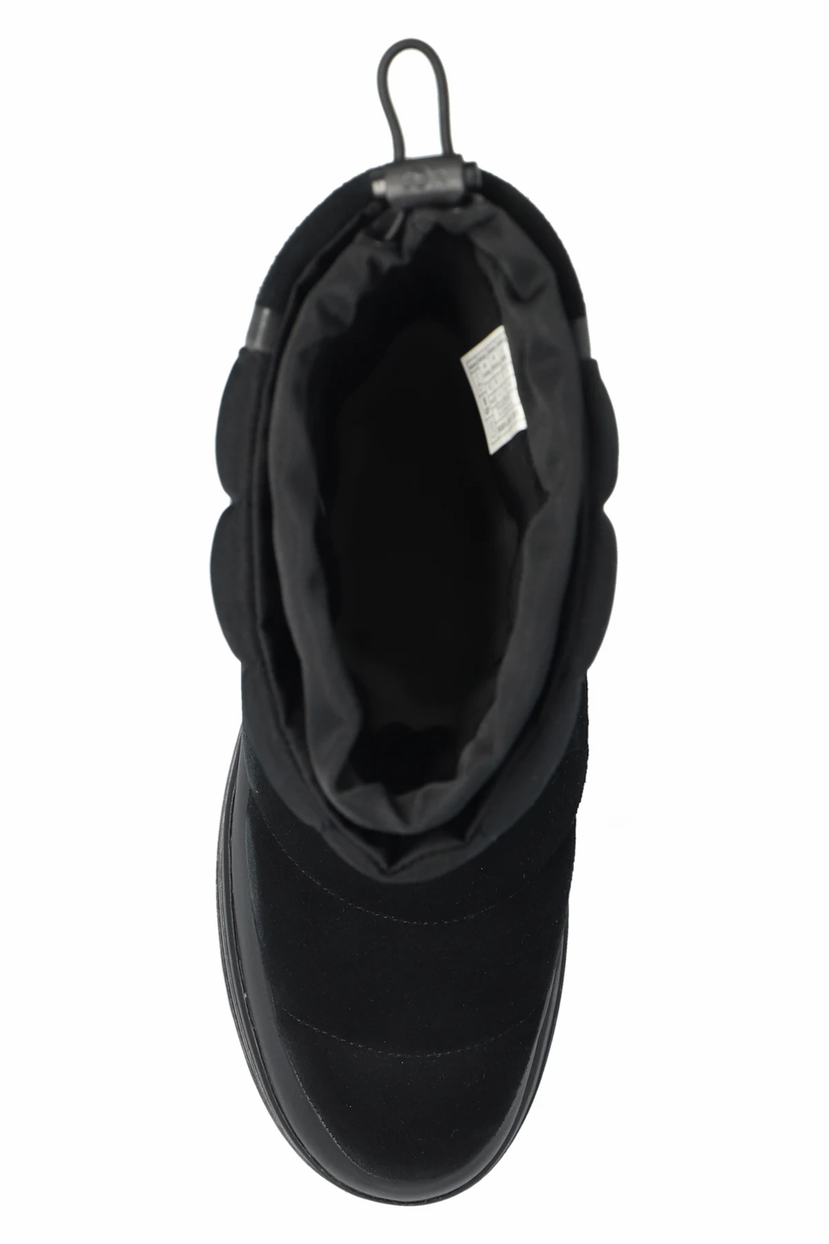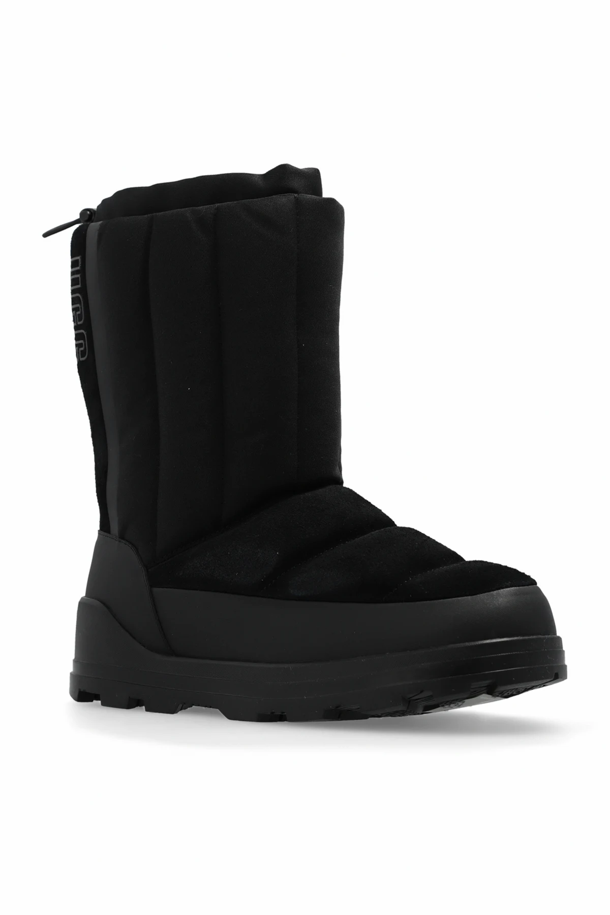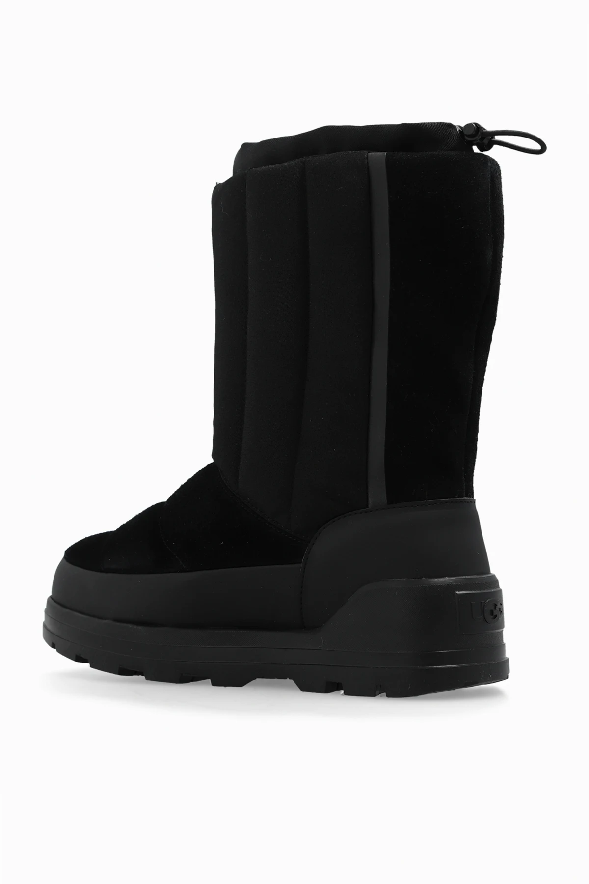 Black ‘Classic Klamath Short’ quilted snow boots from UGG. Made of waterproof suede and recycled fabric, this pair features a drawstring top, seam-sealed construction, UGGplush™ lining, logo detail and black rubber sole. Weather-rated to temperatures as low as -32C.