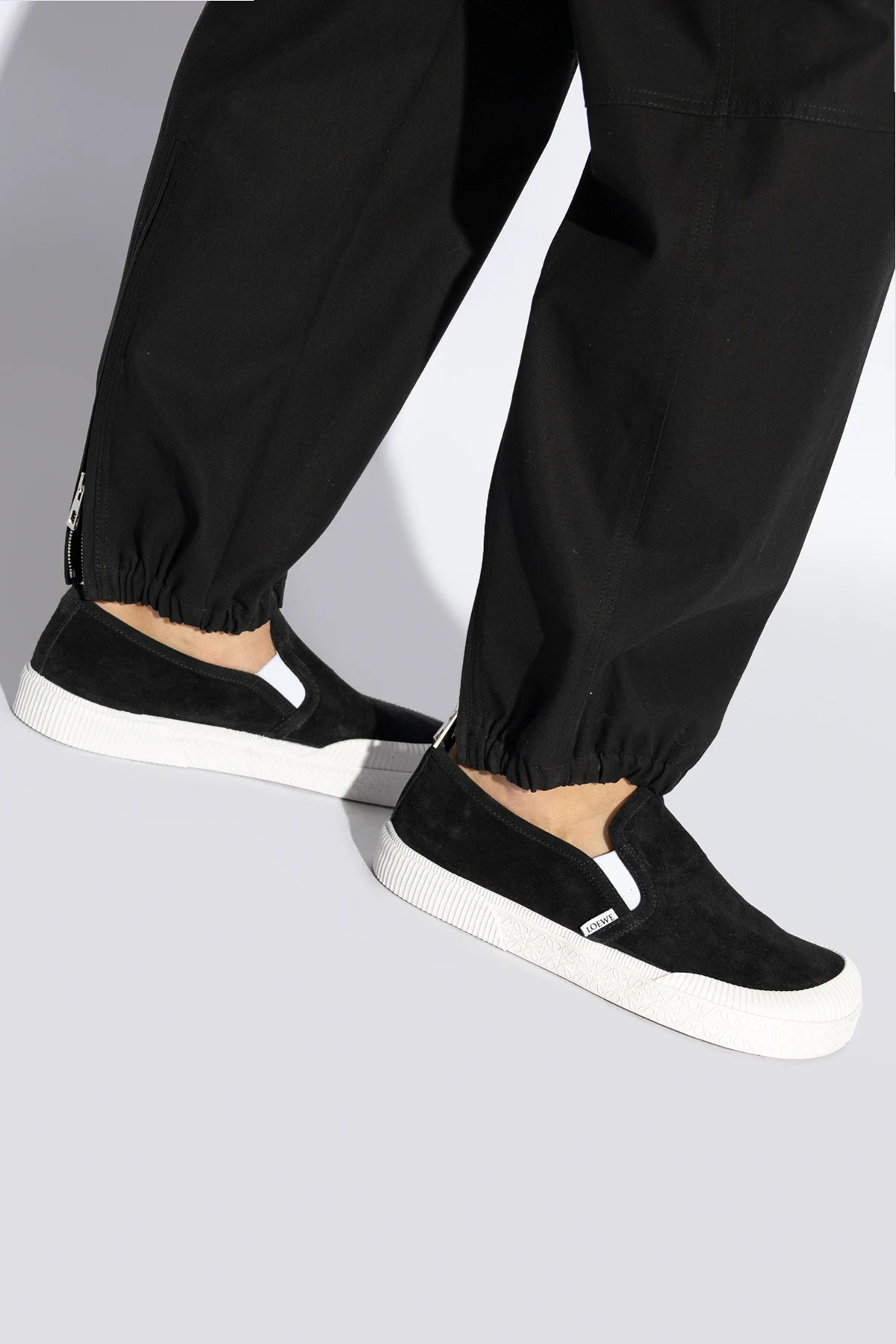 Wir präsentieren die ‘Terra’ Slip-On-Sportschuhe von Loewe - Inbegriff von Luxus im Bereich des lässigen Schuhwerks. Gefertigt aus hochwertigstem Leder, bestechen diese schwarzen Schuhe durch ihre nahtlose Konstruktion, die einen Eindruck von Zartheit und Weichheit erweckt, ähnlich wie Velours. Ihr mattes Finish verleiht eine Note der Eleganz und macht sie zur perfekten Wahl für diejenigen, die sowohl Komfort als auch raffinierten Stil schätzen.