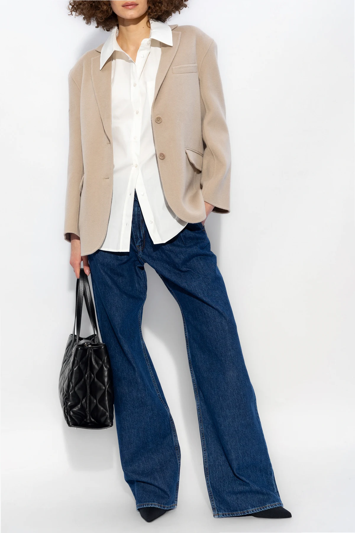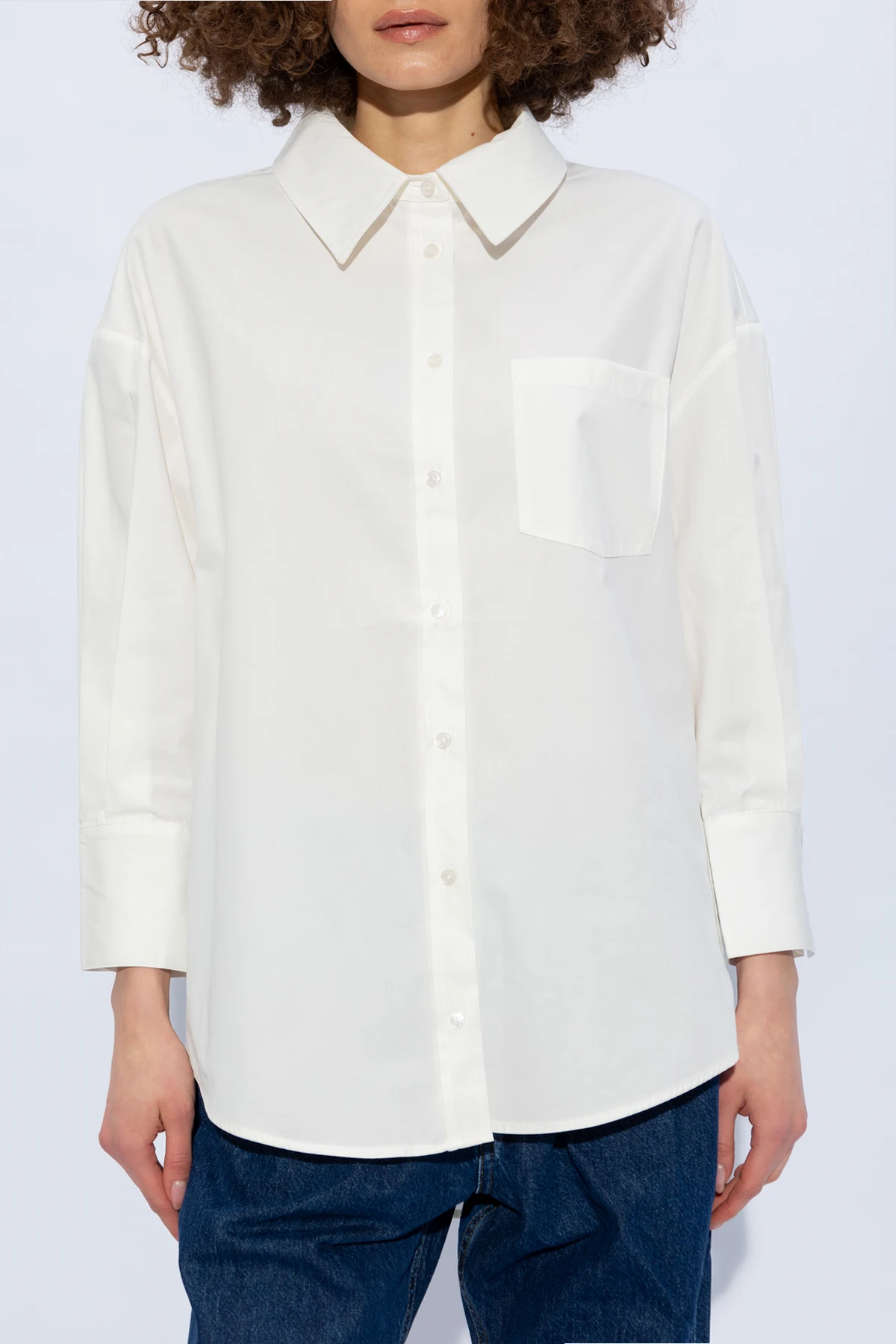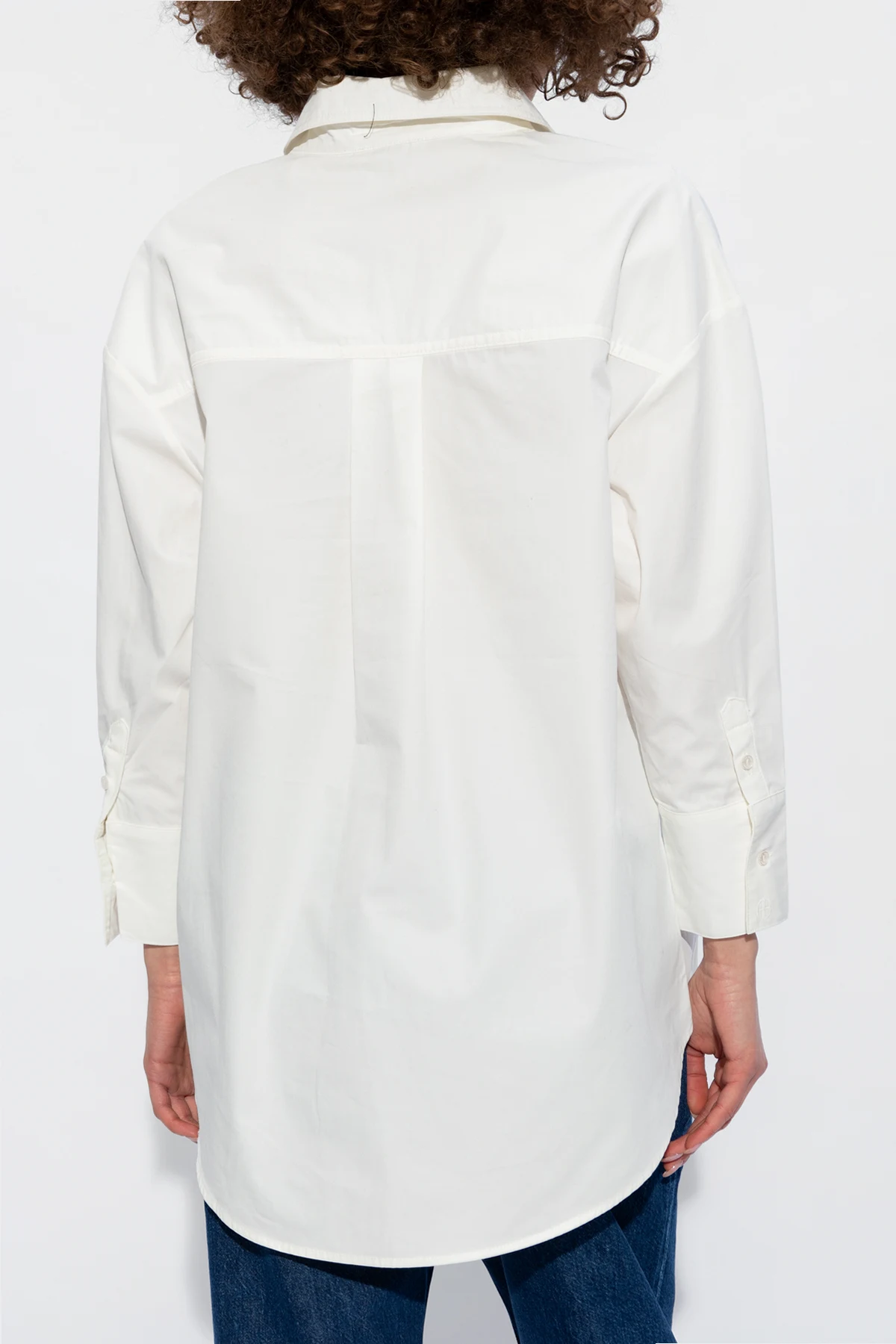 White ‘Mika’ shirt from Anine Bing. Made of cotton. Fastened with buttons, this garment features a collar, front pocket and sleeves with low shoulders and buttoned cuffs.