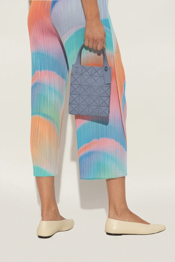 Handtasche der Marke Bao Bao Issey Miyake ist ein raffiniertes Beispiel für ein außergewöhnliches, feminines Accessoire, das fortschrittliche Eleganz ausstrahlt. Die minimalistische, rechteckige Form in Verbindung mit flachen Griffen harmoniert perfekt mit dem futuristischen Muster – einem geometrischen Mosaik aus dreieckigen Applikationen, die effektvoll in eine markante, dreidimensionale Struktur übergehen.