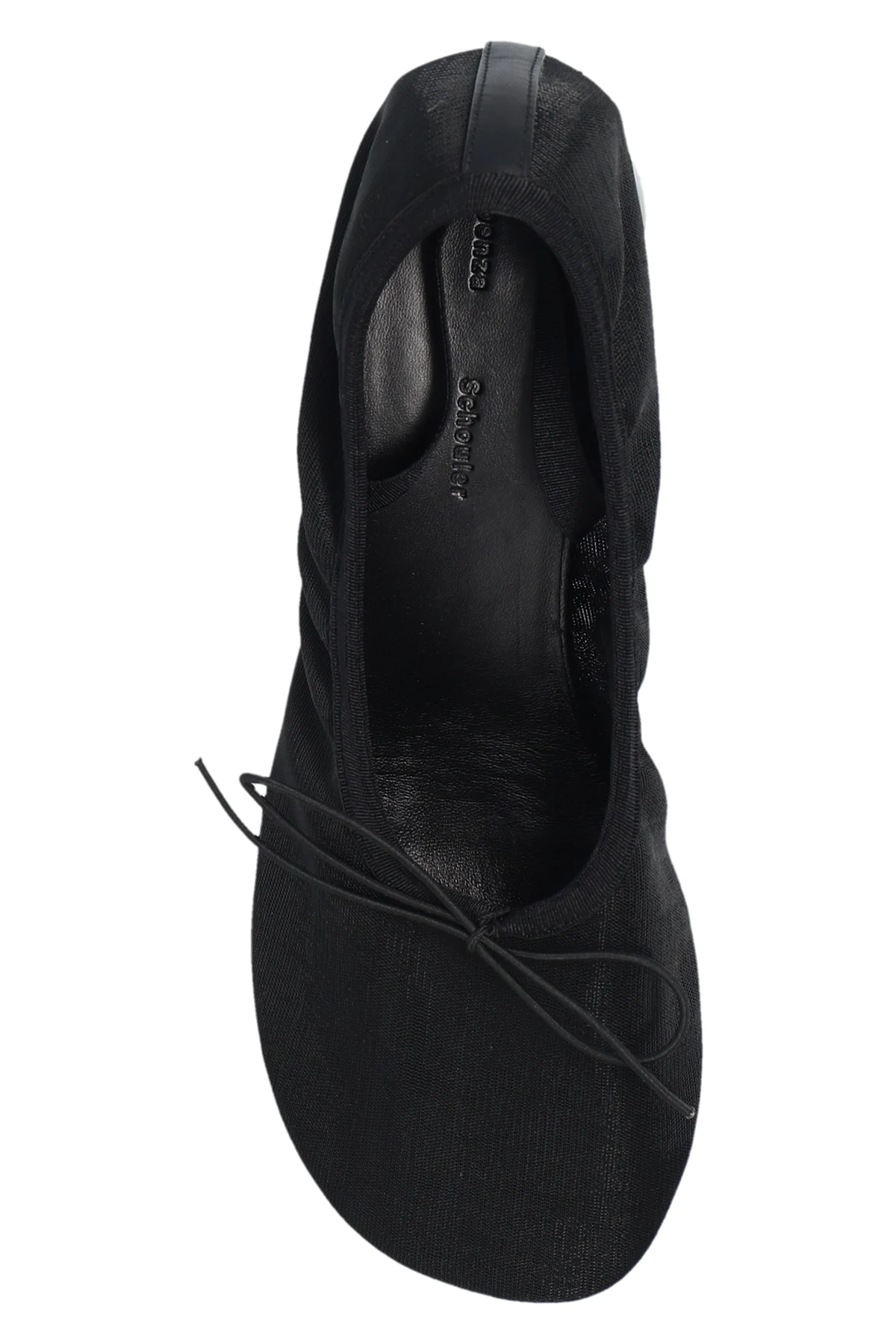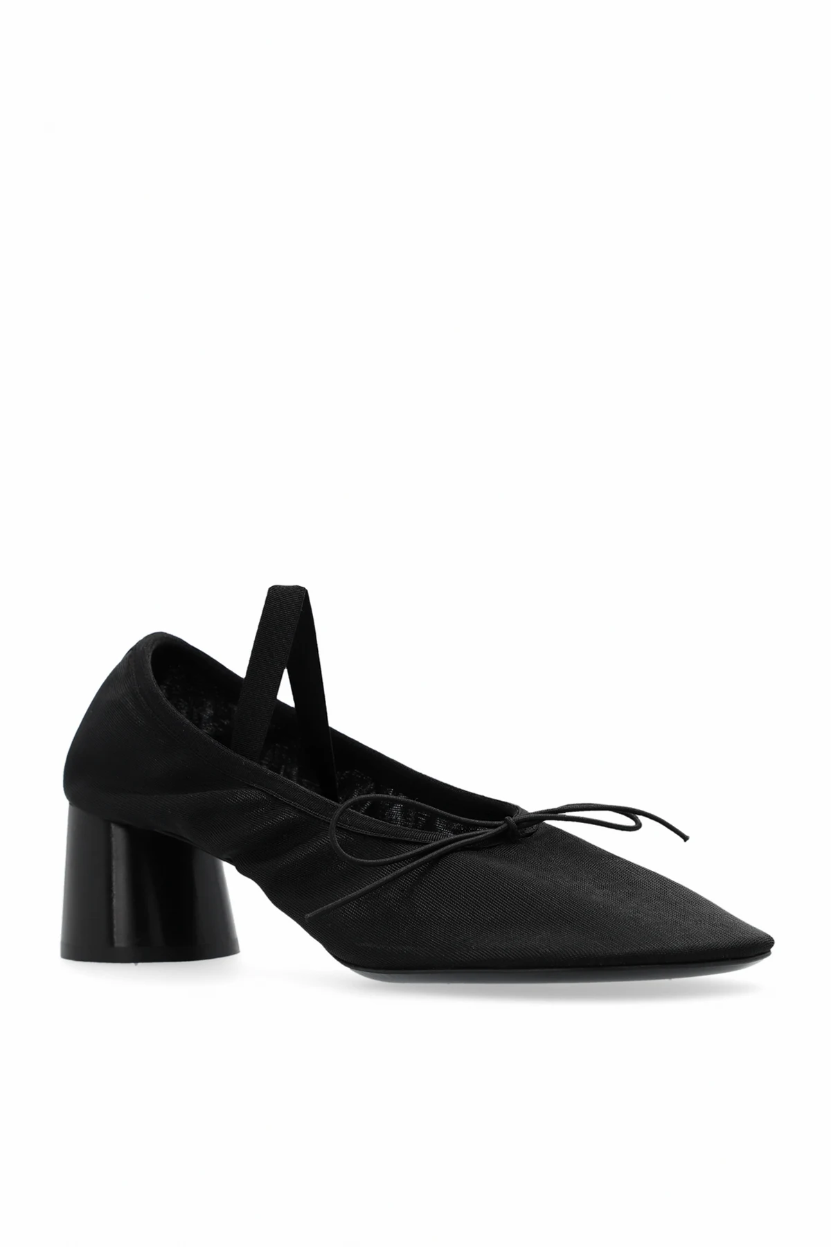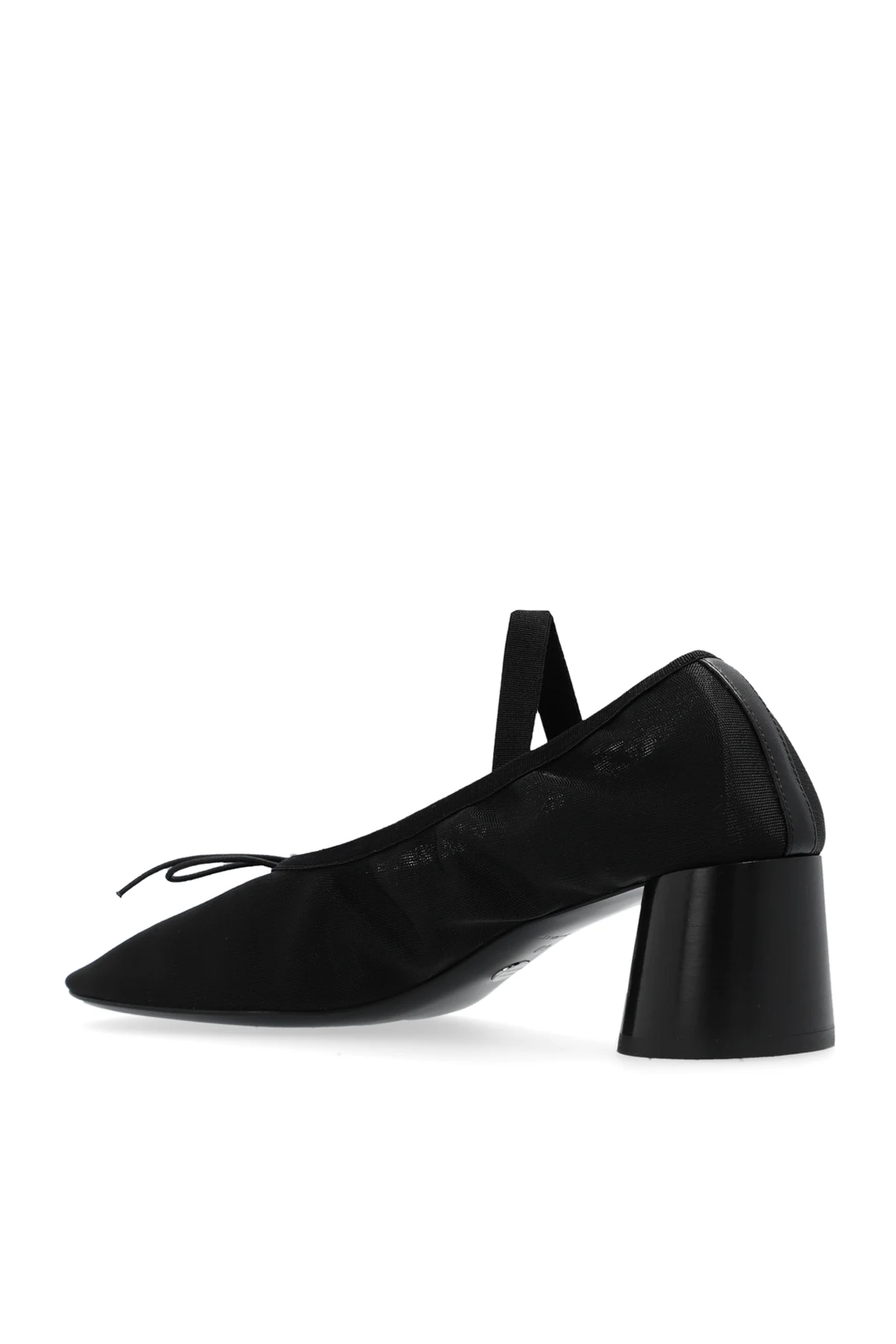 Black ‘Mery Jane’ pumps from Proenza Schouler. Made of mesh, this pair features an elastic strap, decorative bow, rounded toe and a black leather sole.
