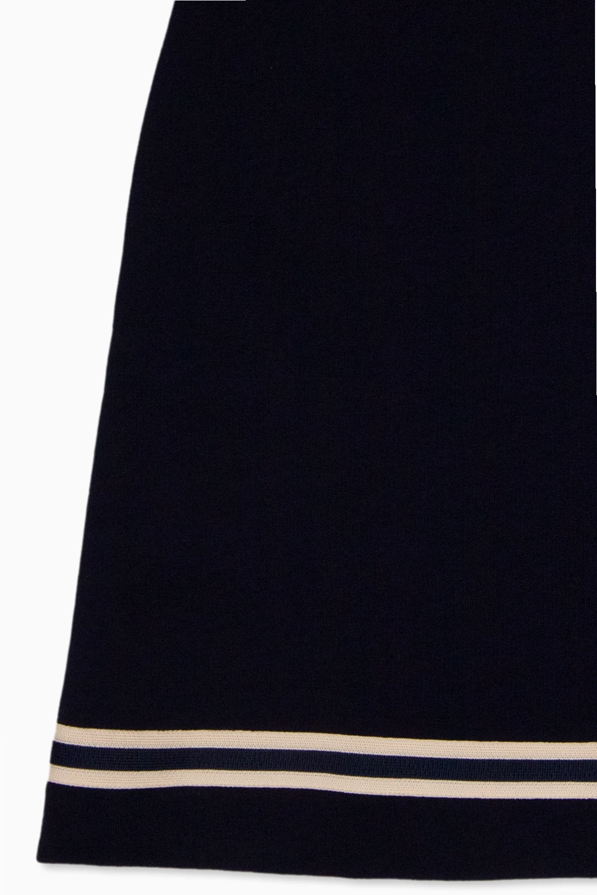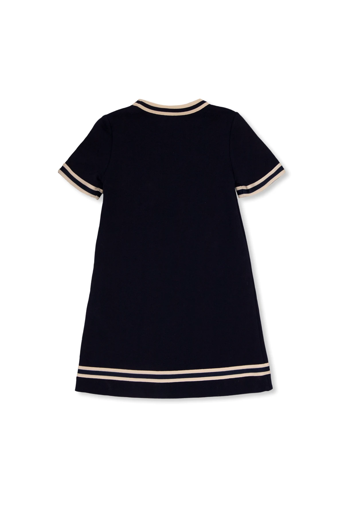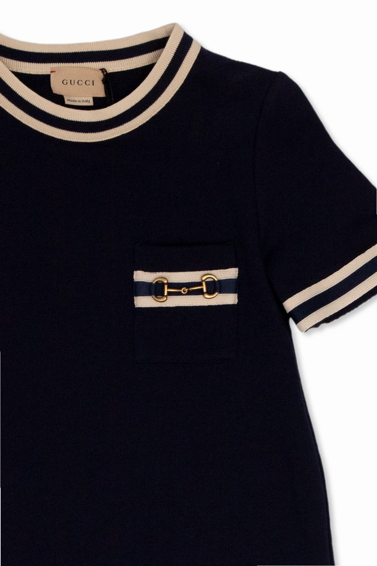 Navy blue dress from Gucci. Made from cotton, this style showcases a signature horsebit application, short sleeves and ribbing on the round neck and short sleeves.