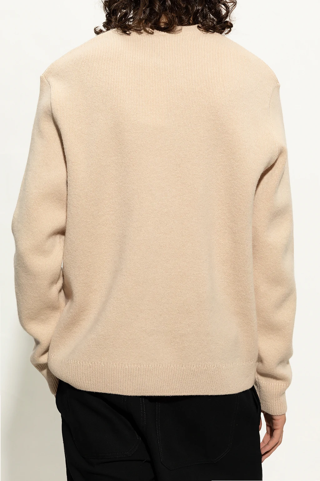 Light beige sweater from Maison Kitsune. Made of wool, this long sleeve design features a grey and white patch with the label’s signature fox head and ribbed trims at the neck, hem and cuffs.