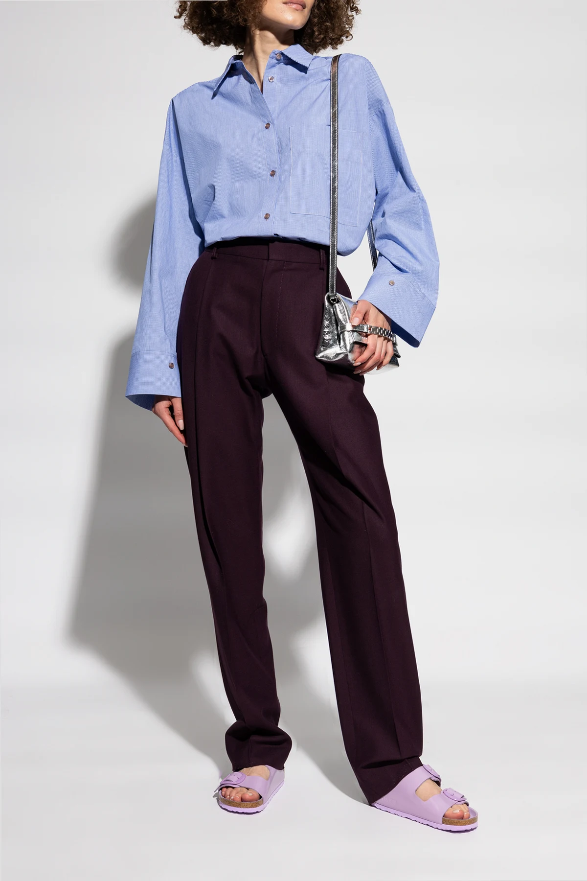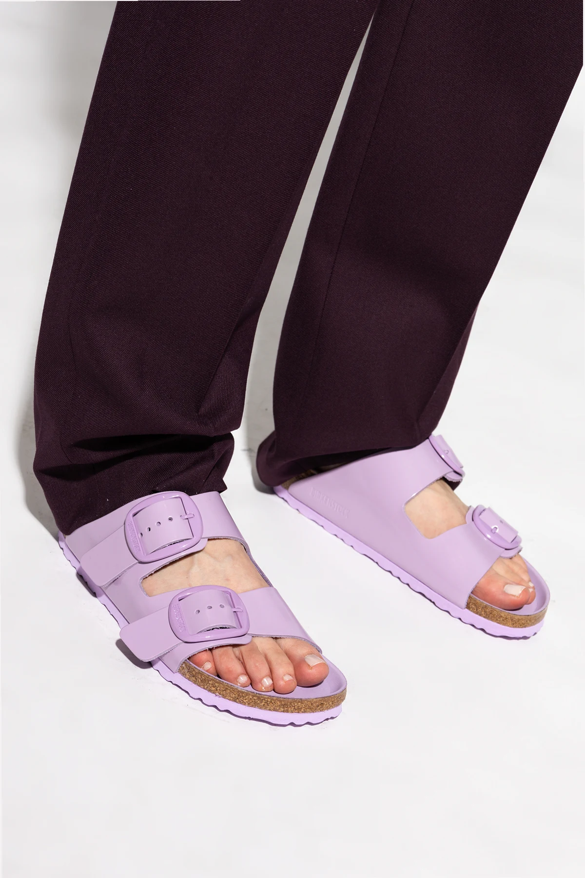 Wir laden Sie ein, die unübertroffene Eleganz und Bequemlichkeit zu entdecken, die die "Arizona Big Buckle" Sandalen vom renommierten Designer Birkenstock bieten. Der einzigartige violette Farbton und das exklusive Design mit zwei breiten, verstellbaren Riemen mit großen Schnallen und dem Designerlogo verleihen diesen Sandalen einen einzigartigen Charakter. Dank dieser Eigenschaft kann jeder die Sandalen perfekt an seinen Fuß anpassen, um höchsten Komfort zu gewährleisten.