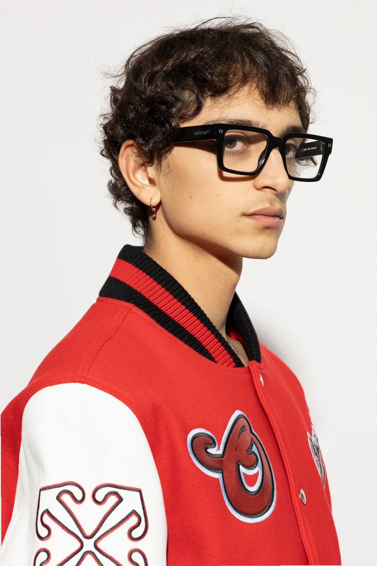 Wir präsentieren Korrekturbrille 54 aus der exklusiven Kollektion der Marke Off-White . Diese Brille vereint modernen Stil mit klassischer Eleganz dank der großen rechteckigen Fassungen aus schwarzem Acetat.