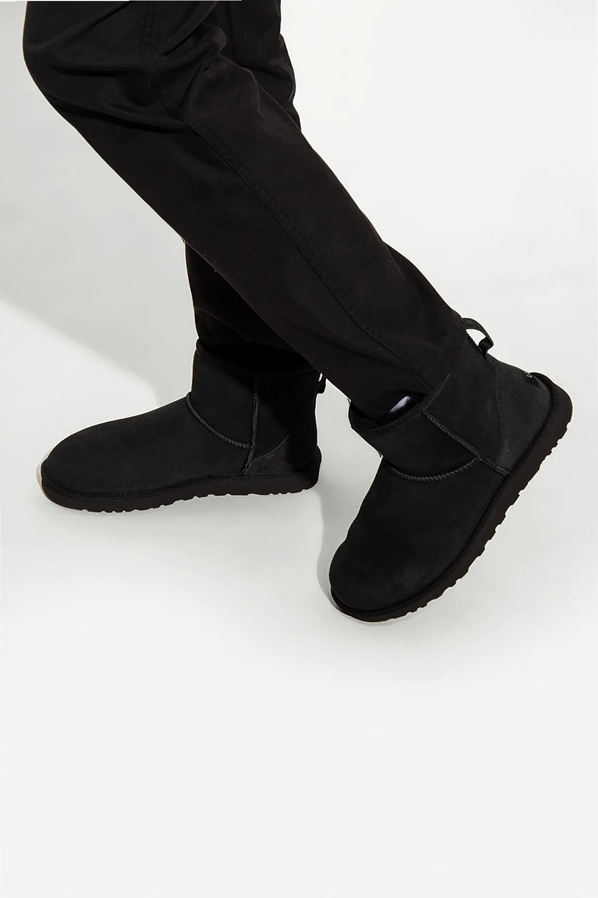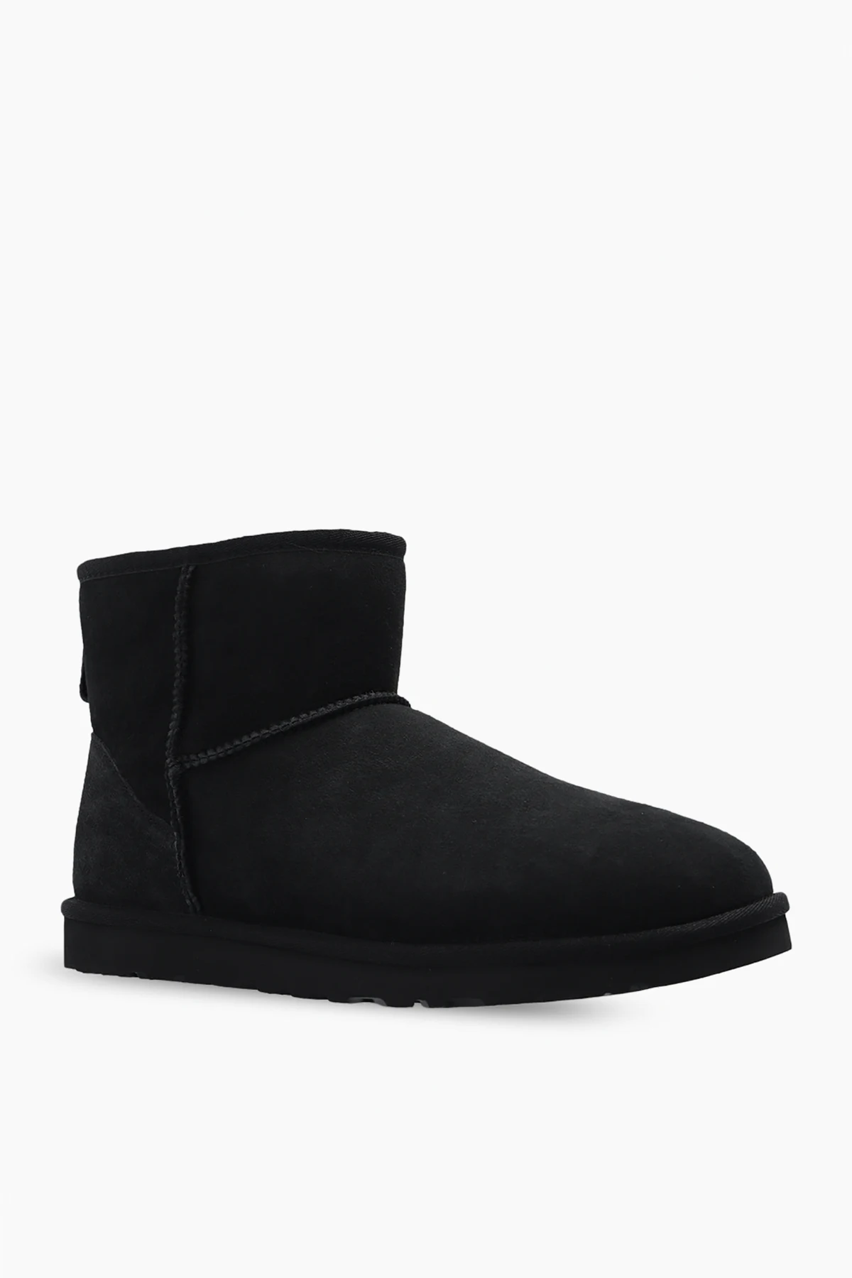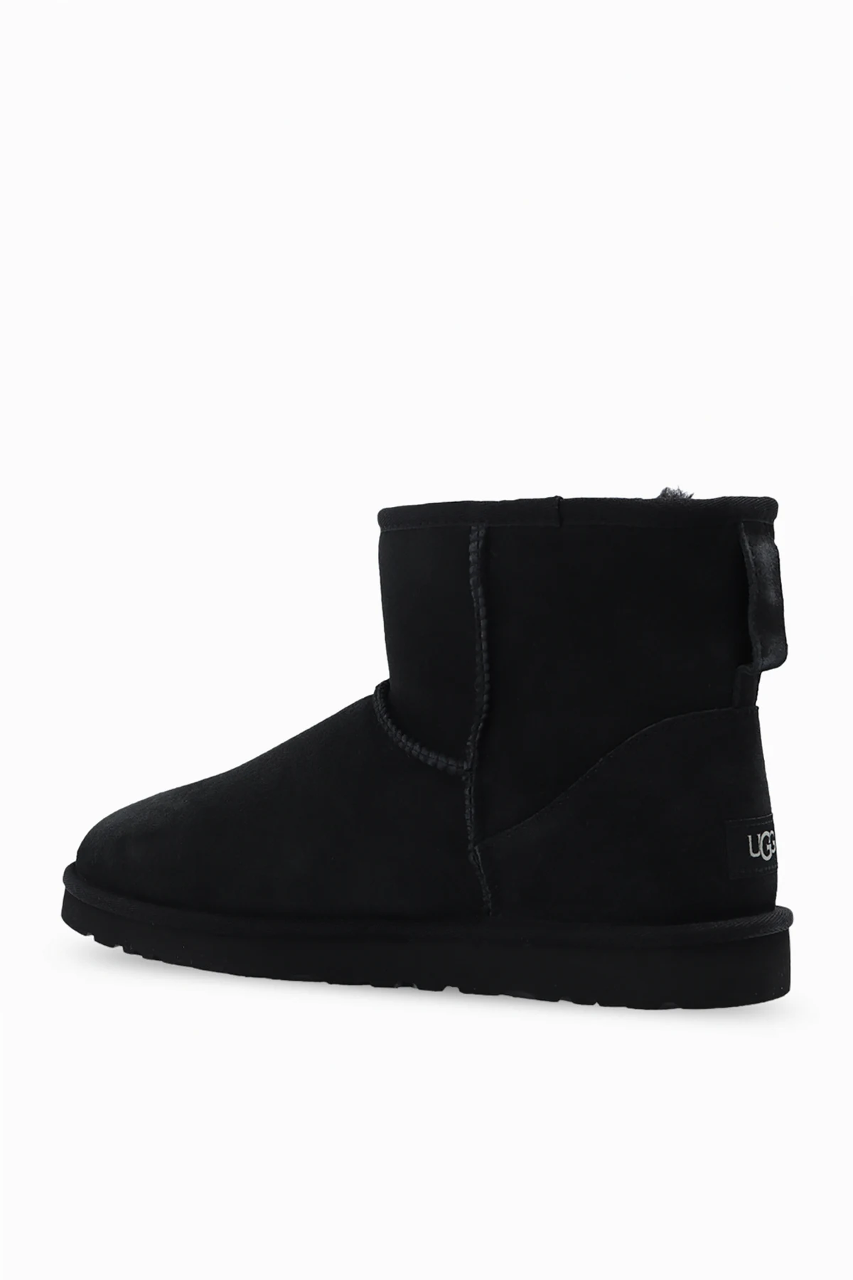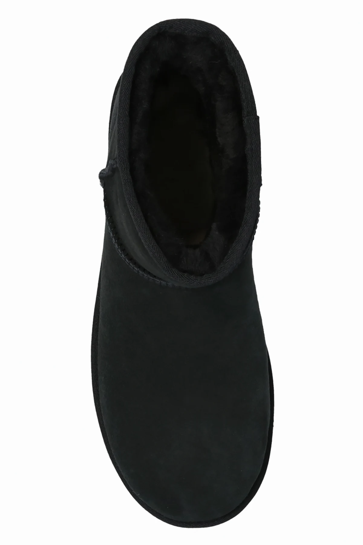Black ‘Classic Mini’ snow boots from UGG. Crafted from soft sheepskin, which naturally wicks away moisture and regulates heat, this model features a back logo patch, UGGpure™ wool insole and a black Treadlite by UGG™ rubber outsole to ensure wearer's comfort.