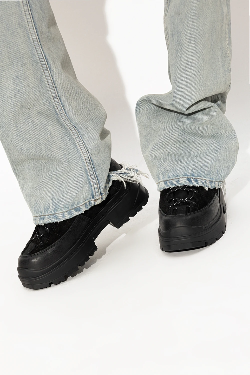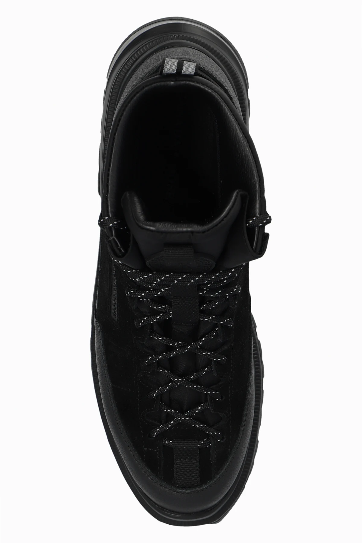 Black ‘Journey Lite’ boots from Canada Goose. Crafted from leather and water-resistant fabric, this lace-up pair features an embossed logo, perforations on the sides and black rubber tread sole.