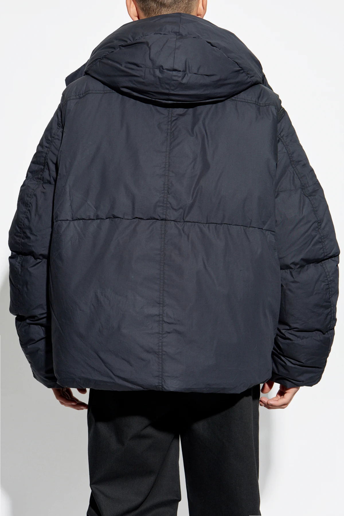 Auf der linken Brust befindet sich ein dezentes, schwarzes Designer-Logo, das der Jacke einen prestigeträchtigen Charakter verleiht. Das Innere der Jacke besteht aus einer Mischung aus Baumwolle und Polyamid, gefüllt mit Daunen und Federn, was eine hervorragende Wärmedämmung selbst unter extremen Bedingungen garantiert.