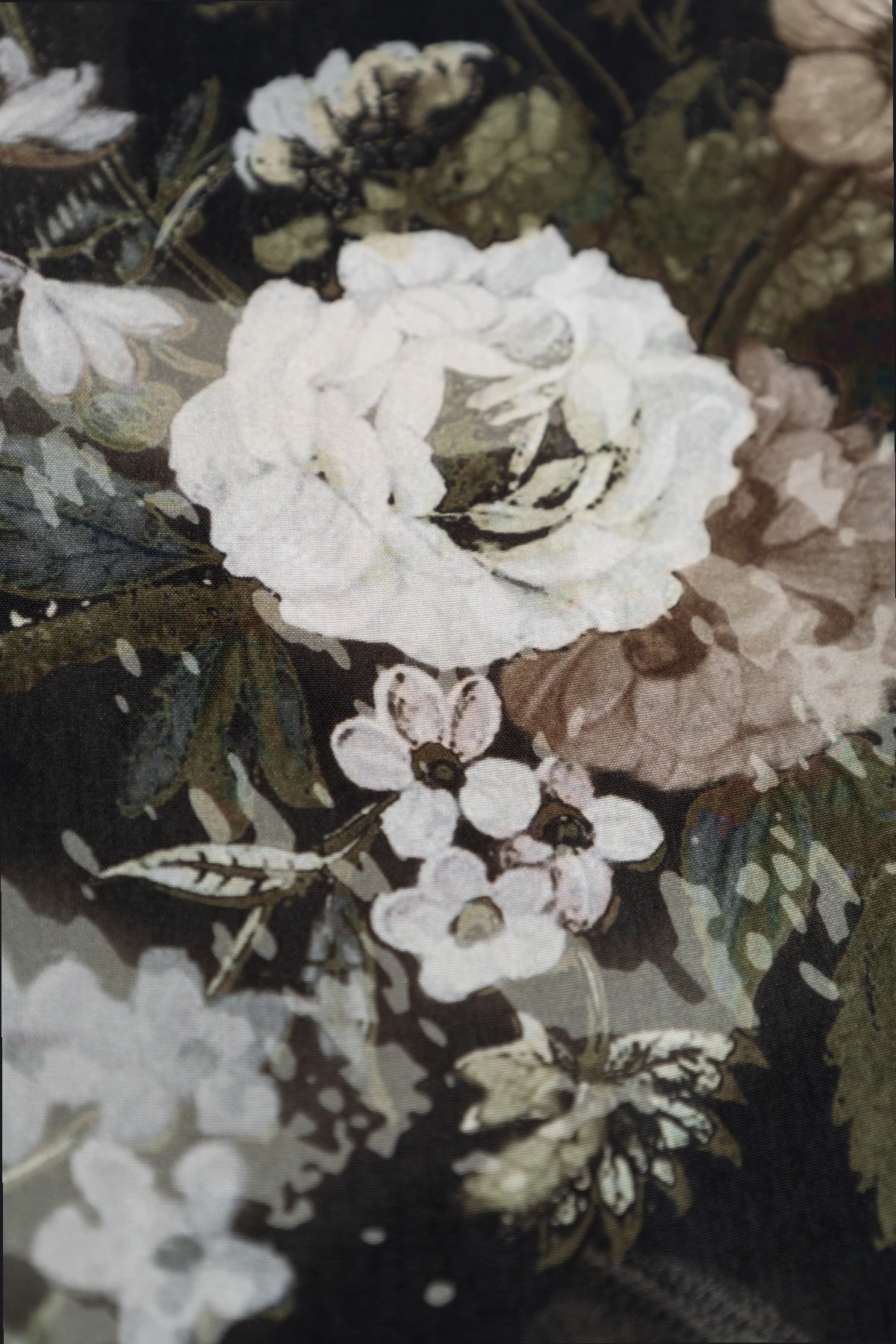 Realistisches, feines Blumenmuster auf dunklem Hintergrund verleiht Charme und Klasse.
