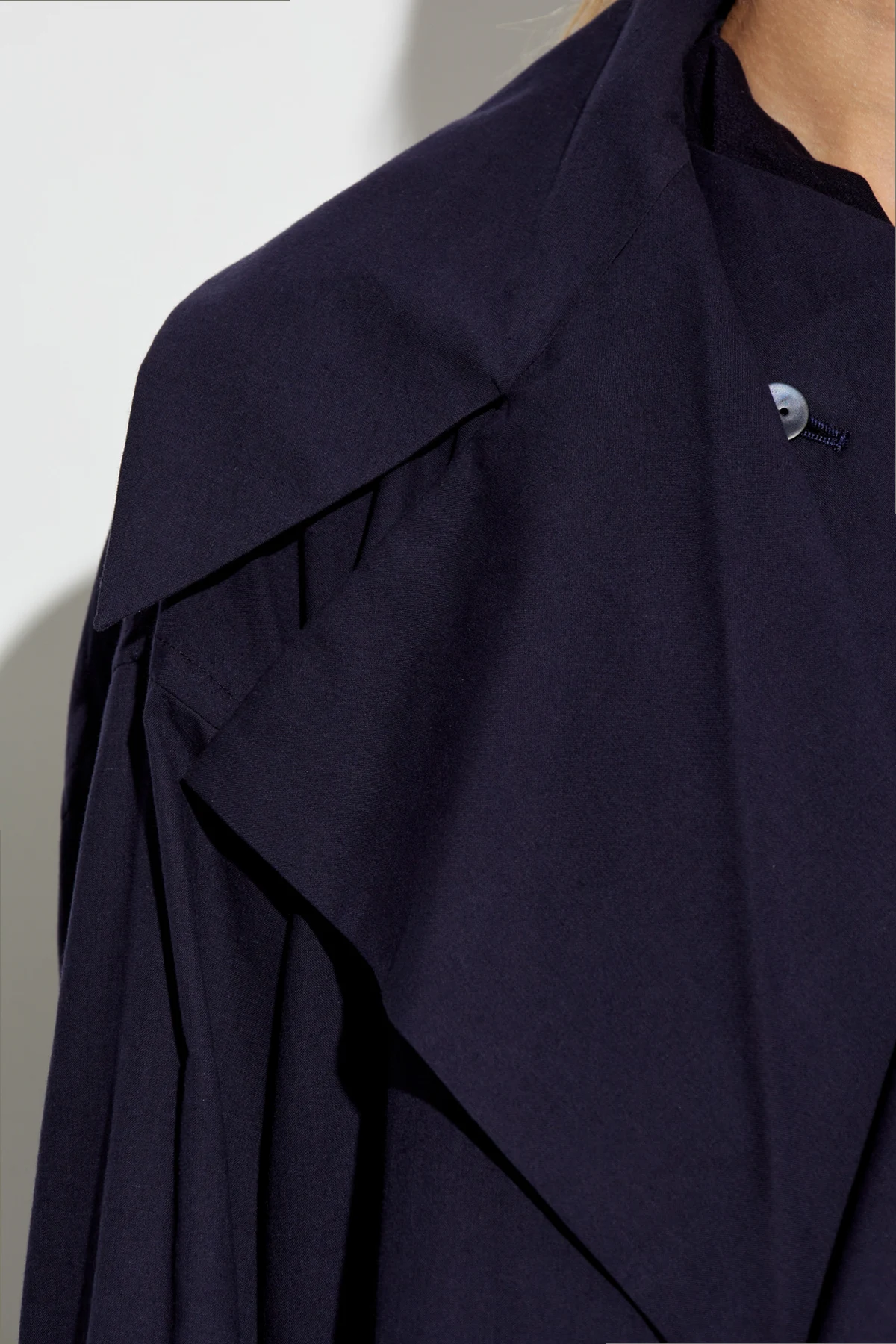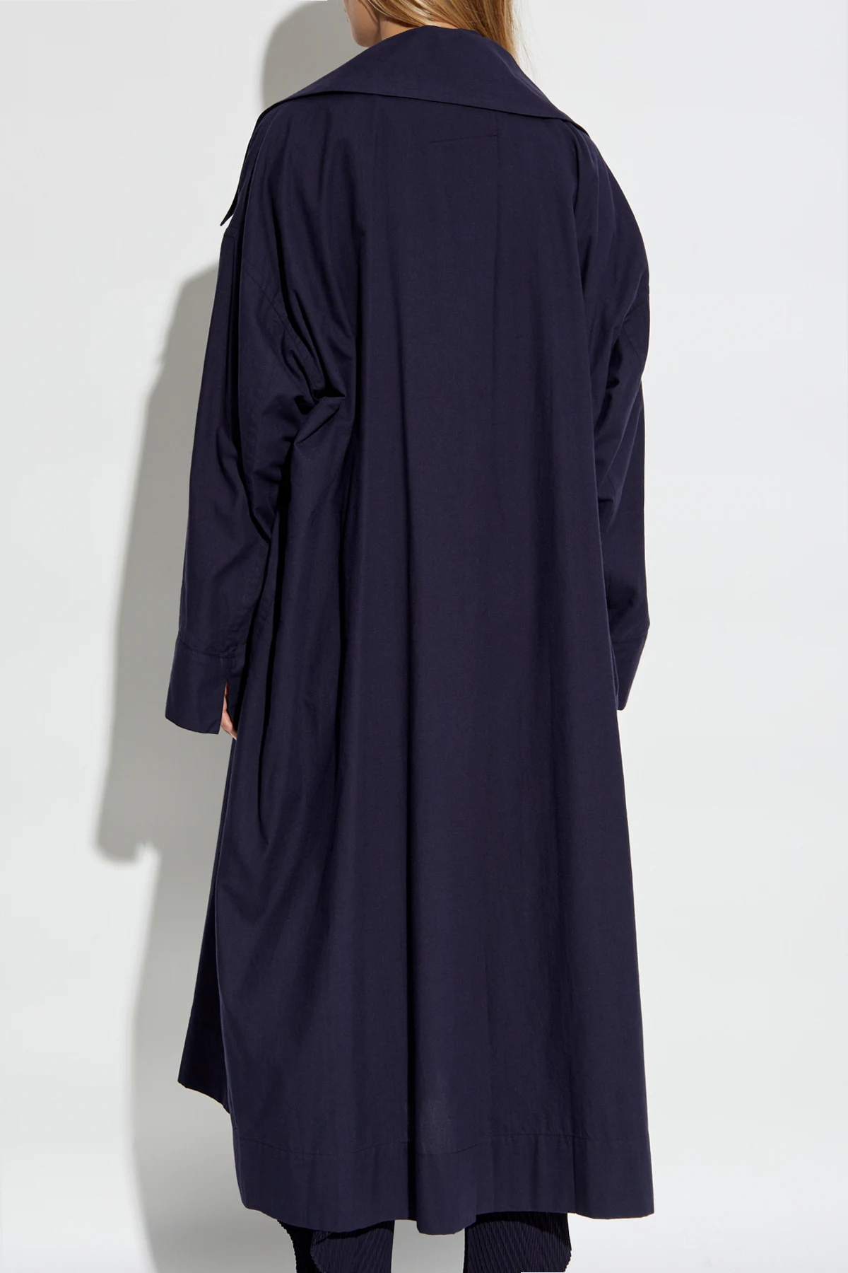 Dieser Trenchcoat im klassischen, langen Schnitt, der fast bis zu den Knöcheln reicht, ist aus hochwertiger 100% Baumwolle gefertigt. Die marineblaue Farbe verleiht ihm zeitlose Eleganz, während die breiten Revers und die doppelreihige Knopfleiste ihm einen raffinierten Charakter verleihen. Der Trenchcoat verfügt zudem über große, aufgesetzte Taschen an den Seiten sowie breite Ärmel mit Manschetten, die einen außergewöhnlichen Tragekomfort bieten.