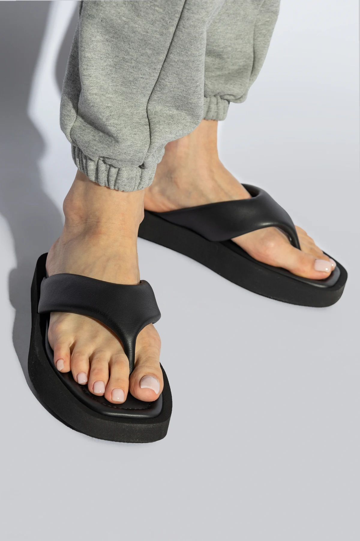 Ihre universelle schwarze Farbe macht die ‘Sajade’ Flip-Flops unglaublich leicht zu verschiedenen Outfits zu kombinieren, von lässigen bis hin zu eleganten Ensembles. Als Teil der "Plateau"-Kategorie passen diese Schuhe mit erhöhter Sohle sowohl zu Jogginghosen als auch zu einem ausgefeilten Top und Hosen, was sie zur idealen Wahl für jede Gelegenheit macht.